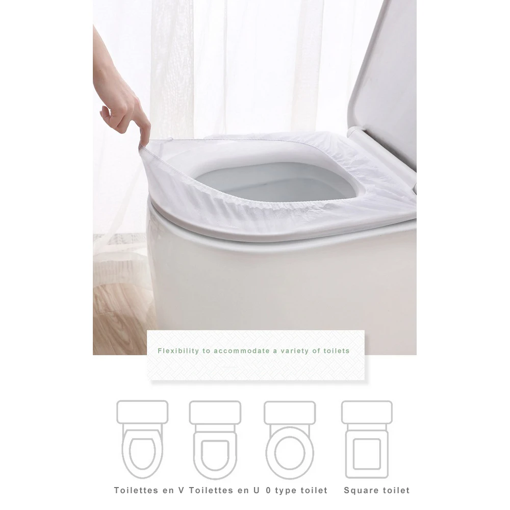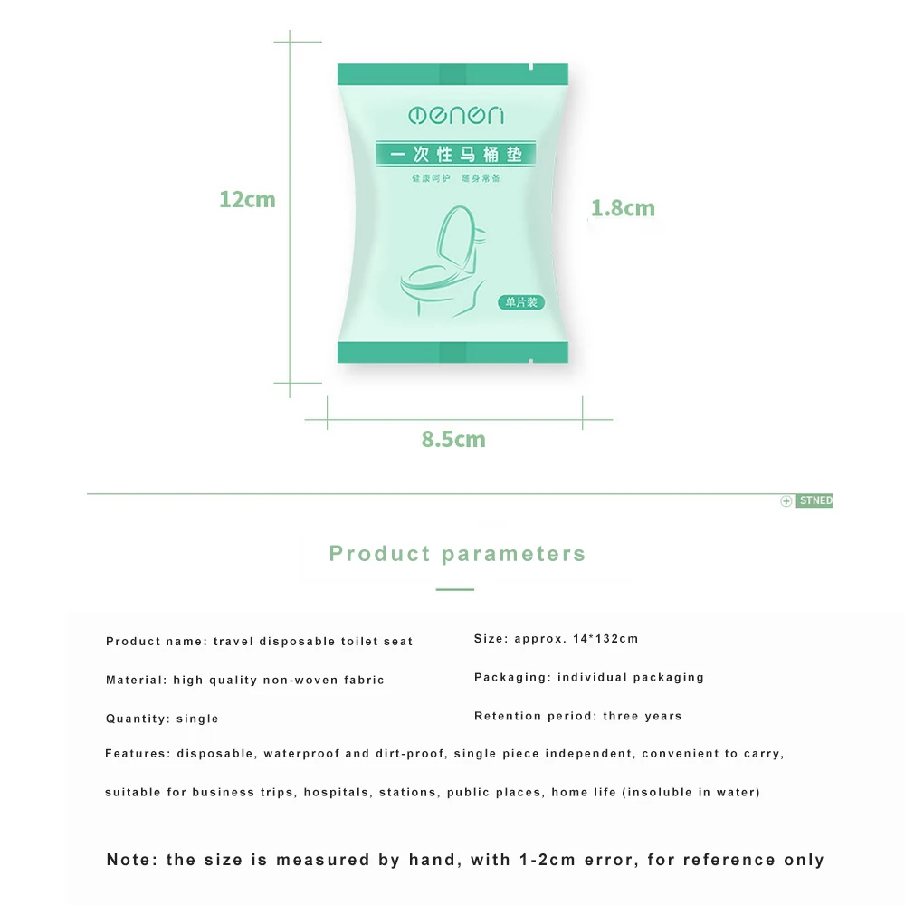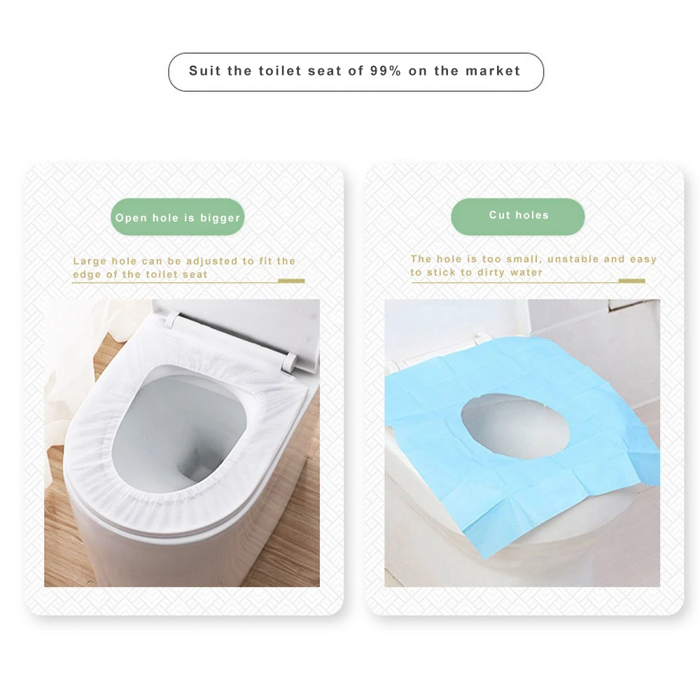 [Защитный барьер] сиденье для унитаза изготовлено из нетканой ткани, пропитанной пленкой, которая является водонепроницаемой, антибактериальной и гигиеничной. Таким образом, пользователь имеет хорошую способность защиты, чтобы предотвратить размножение бактерий в общественных туалетах[Различные виды применения] одноразовые сиденья для унитаза, очень подходят для детей, ходунков, беременных женщин и пожилых людей, подходят для туалетов в торговых центрах, больницах, офисах, ресторанах и т. д. Особенно подходит для путешествий детей.