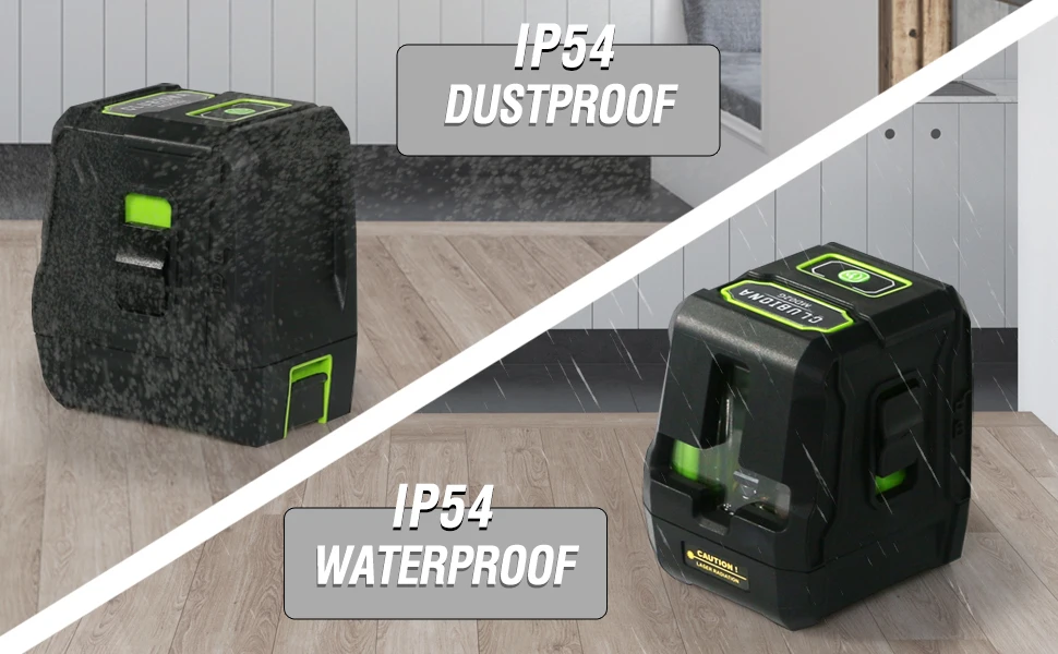 Защита от воды/пыли IP54 обеспечивает хорошую работу в опасных условиях. Защита от TPR мягкой резины со всех сторон делает лазерный уровень ударопрочным, износостойким и ударопрочным.