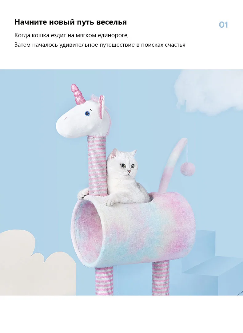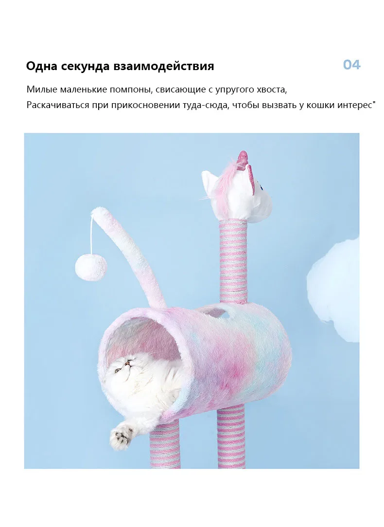 Название продукта: Единорог кошка Гусеничный Материал: плюш, плотная доска, сизаль Особенности продукта: лапа лазания, игры и отдыха Размер продукта: 50*35*105 см 0 формальдегид, качественный уход за здоровьем кошек. *: Записки 1. Продукты нового производства, герметичная транспортировка, материал доски будет иметь небольшой запах, не влияет на здоровье, просто оставьте в вентиляции 3-5 дней 2. Рекомендуется протирать влажной тканью, чтобы очистить ее, избегайте стирки. 3, кошки не знаком с вещами, интересны и внимательны, первоначальное предложение-поместить в интерьер кота хорошо известные ароматные предметы для соответствующего руководства.