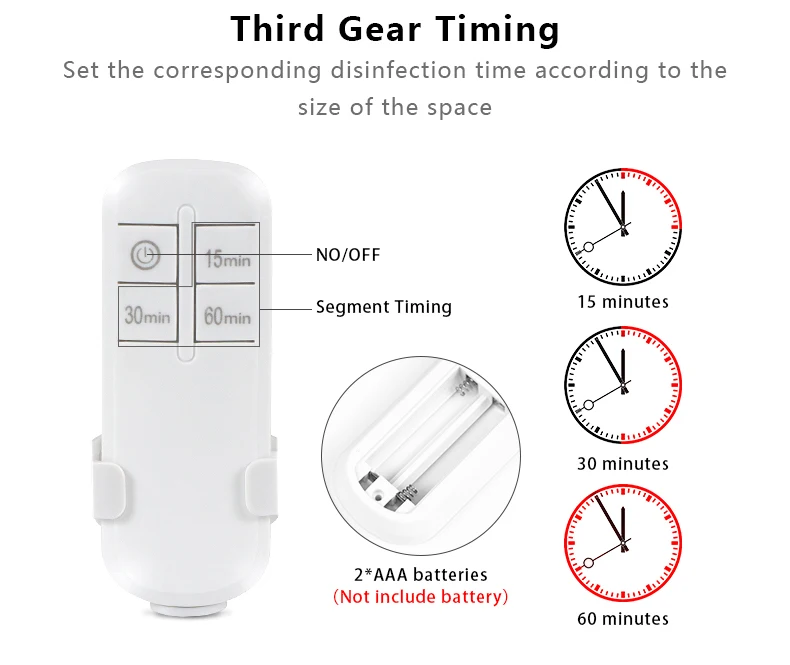 UVC Ray вреден для глаз и кожи, не смотрите на лампу, когда светильник поднимается. Люди/питомцы/растения не могут подвергать светильник. После использования, потому что лампа убивала много бактерий в комнате, пожалуйста, откройте окна и двери, позвольте комнате проветривать 15 минут, а затем войти.