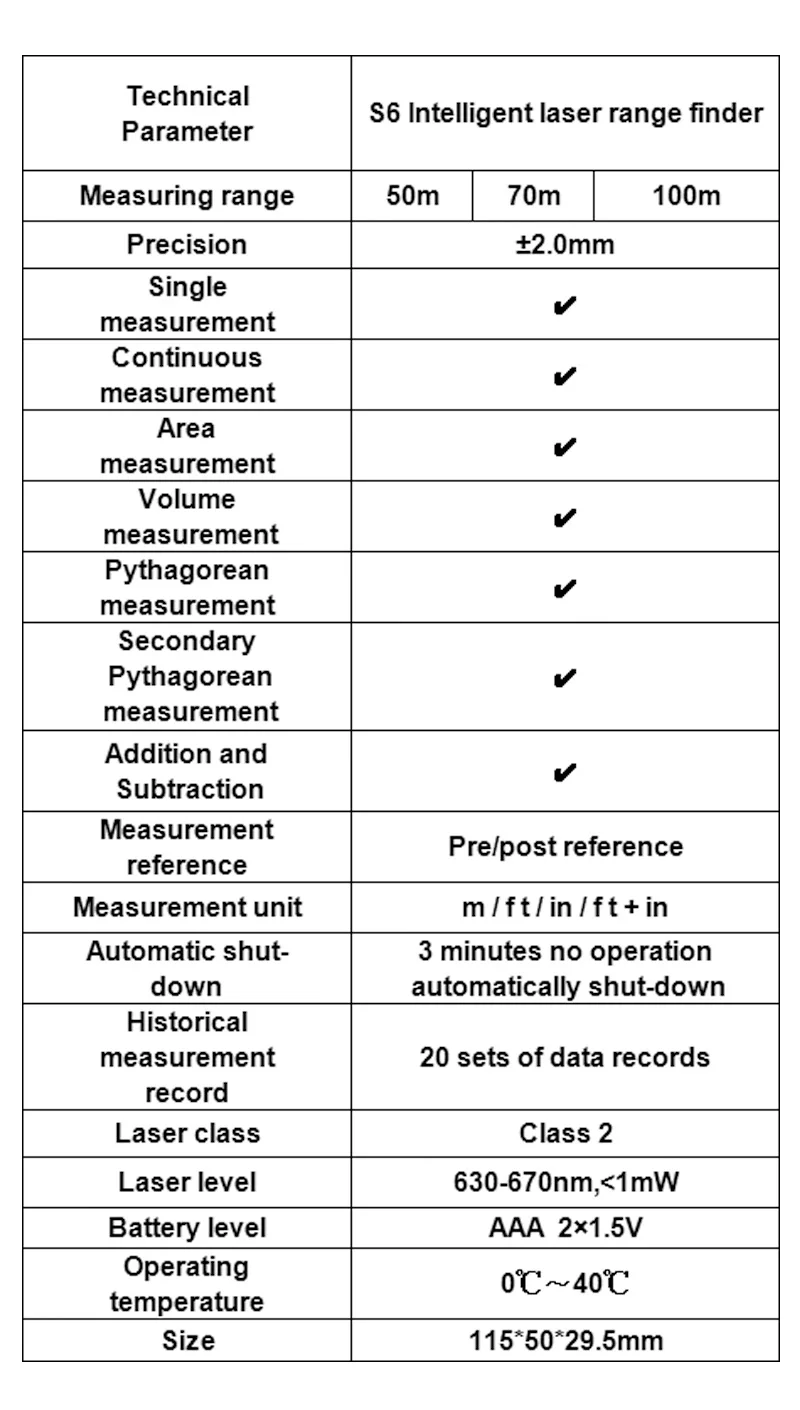 2020 новейший лазерный дальномер S6, 50 м, 70 м, 100 м, дальномер trena, лазерный дальномер, дальномер, измерительный линейка, инструмент для испытания Примечание: -Цвет кнопки отправляется случайным образом -Только цвет кнопки отличается, цена и функция одинаковые