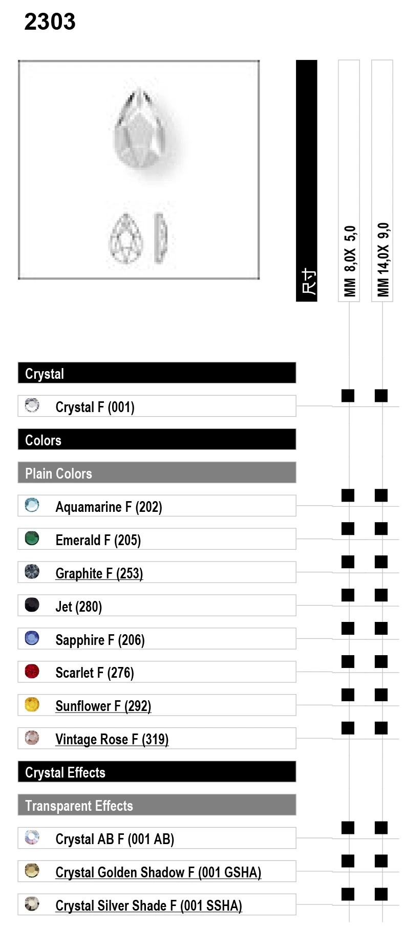 Спецификация, что с черным квадратом означает, что эта спецификация по-прежнему производится Swarovski. Затем можно заказать.