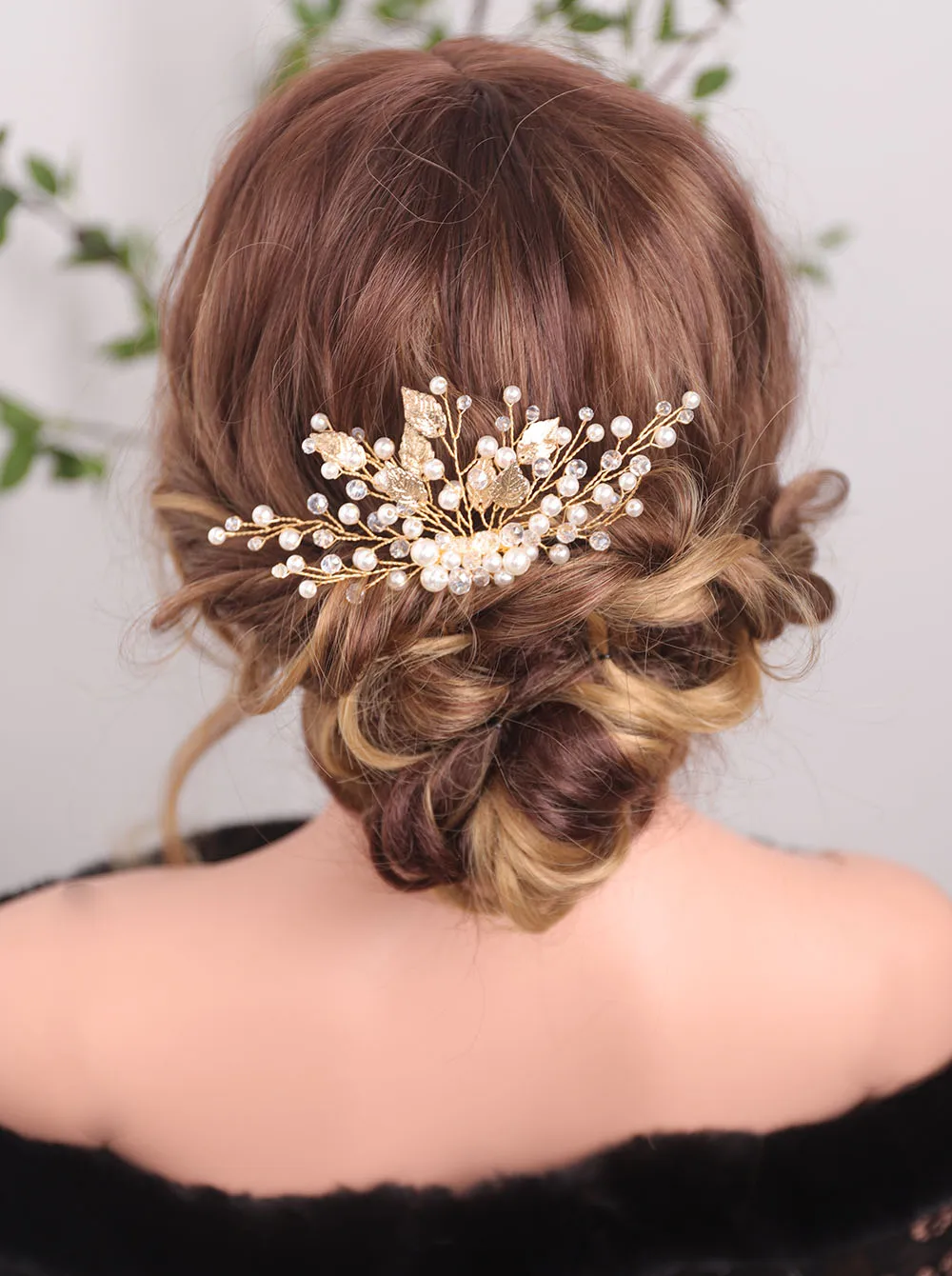 Материалы: сплав, искусственный жемчуг и искусственный кристалл Этот головной убор используется для особых случаев, таких как свадьбы, обеды или вечерние. Деликатные аксессуары для волос делают вас красивее. Этот стиль, как правило, является простым, сдержанным и элегантным.