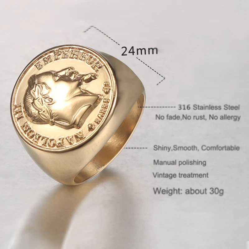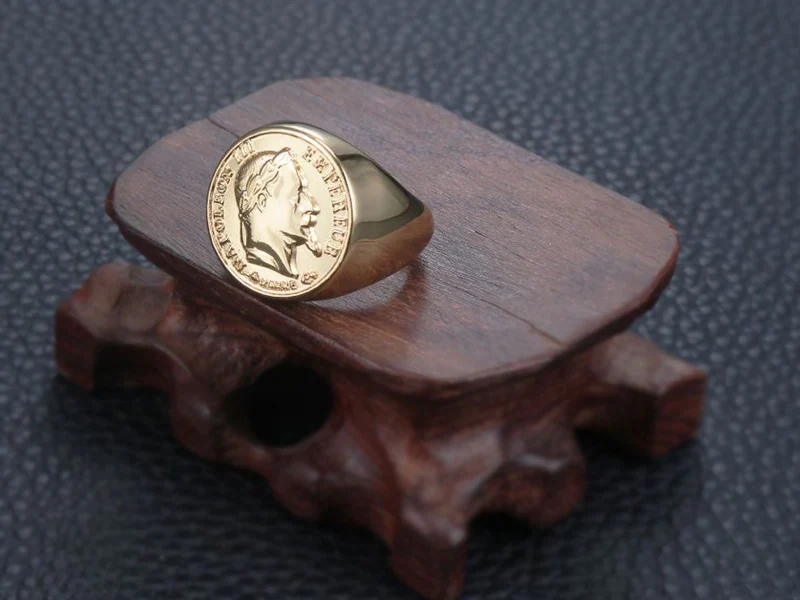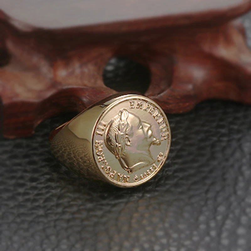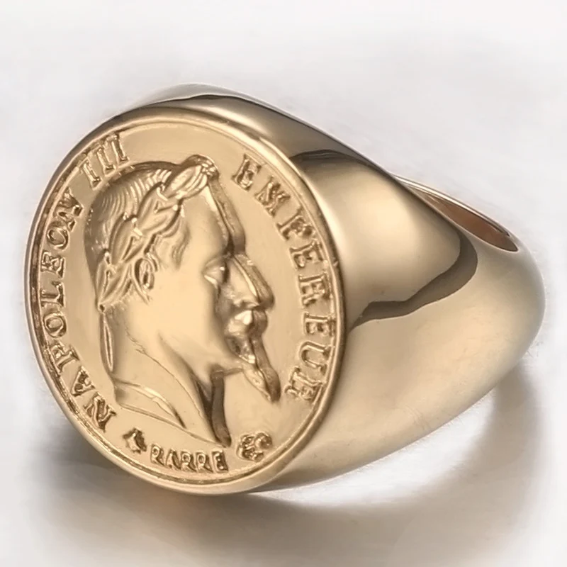 Французское монетное кольцо из нержавеющей стали, кольцо для монет Napoleon III Empereur, мужское французское ювелирное изделие, золото, панк, франки, скульптурная форма, размер 7-15, цвет s: золотой