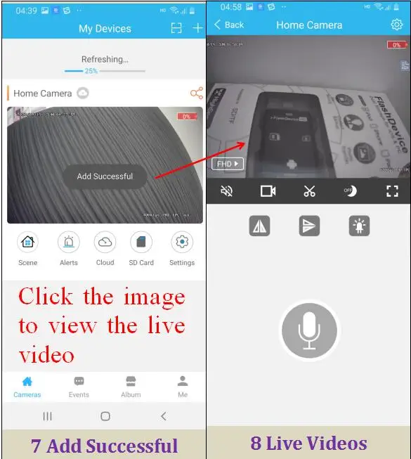 Нажмите «настроить камеру Wi-Fi» для подключения камеры к режиму IP 1 Настройка WI-FI2 выберите WI-FI3 введите пароль 4 Подтвердите PWD5 ожидание Setting6 введите nameClick «следующий шаг», чтобы добавить устройство