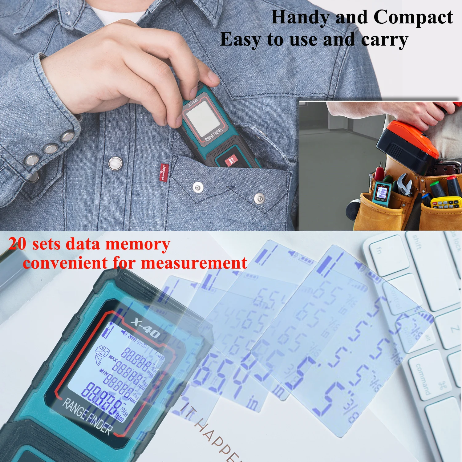 Лазерный измеритель TECLASER, лазерный измеритель расстояния, лазерная измерительная лента с цифровой подсветкой, ЖК-дисплей, лазерный дальномер, измерение расстояния