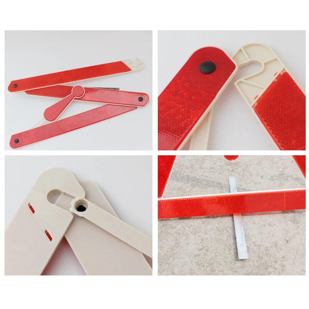 -Складные отражающие треугольные предупреждающие знаки, когда они не используются, можно сложить вместе, легко носить с собой и использовать при открытии после того, как автомобиль снова, вы едете из необходимого оборудования безопасности.