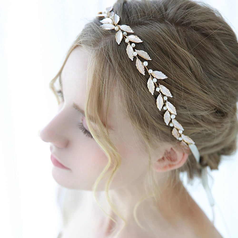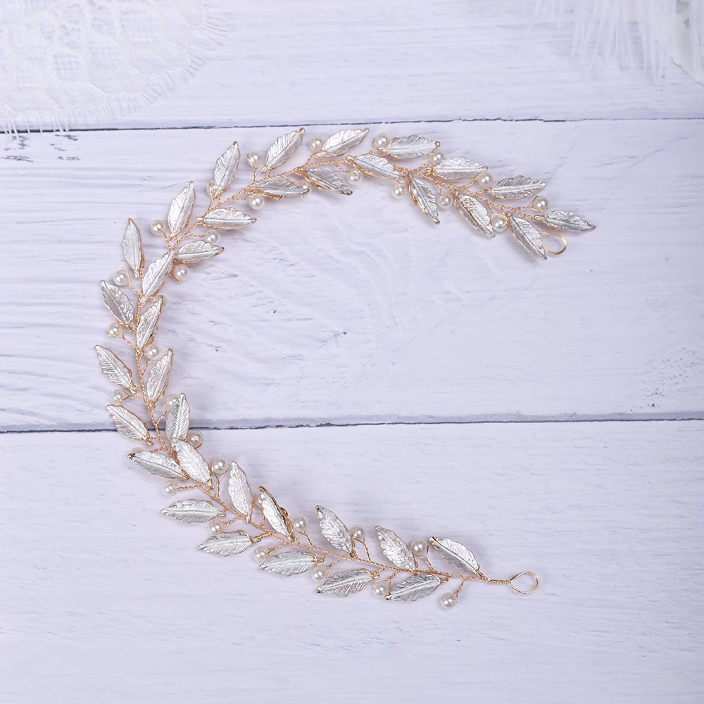 Материал: медная проволока и искусственный жемчуг Этот аксессуар для волос изготовлен из металлических листьев и искусственного жемчуга. Он подходит для многих случаев.