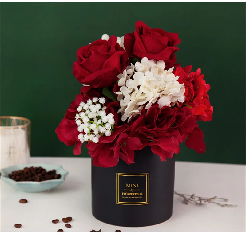 Имитация розы поддельный черный большой высококачественный атмосферный простой светильник роскошный черный лейбл керамическая прямая ваза цветочное украшение
