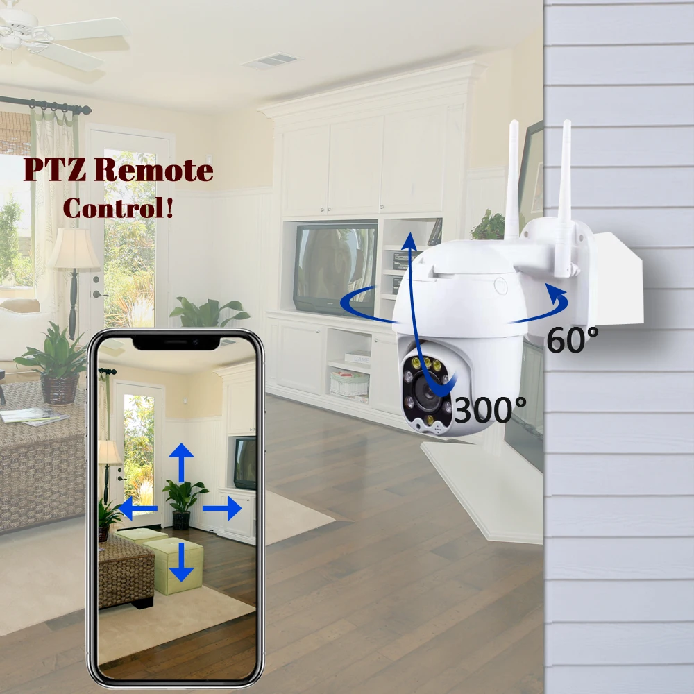 -Контроль PTZ: вращение на 355 градусов по горизонтали и поворот на 90 градусов по вертикали. Мобильный телефон может контролировать угол вращения карданного шарнира, и вы можете увидеть необходимое направление.