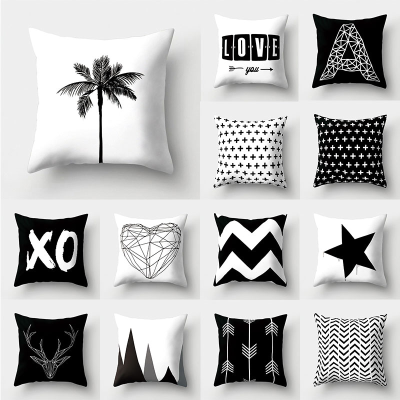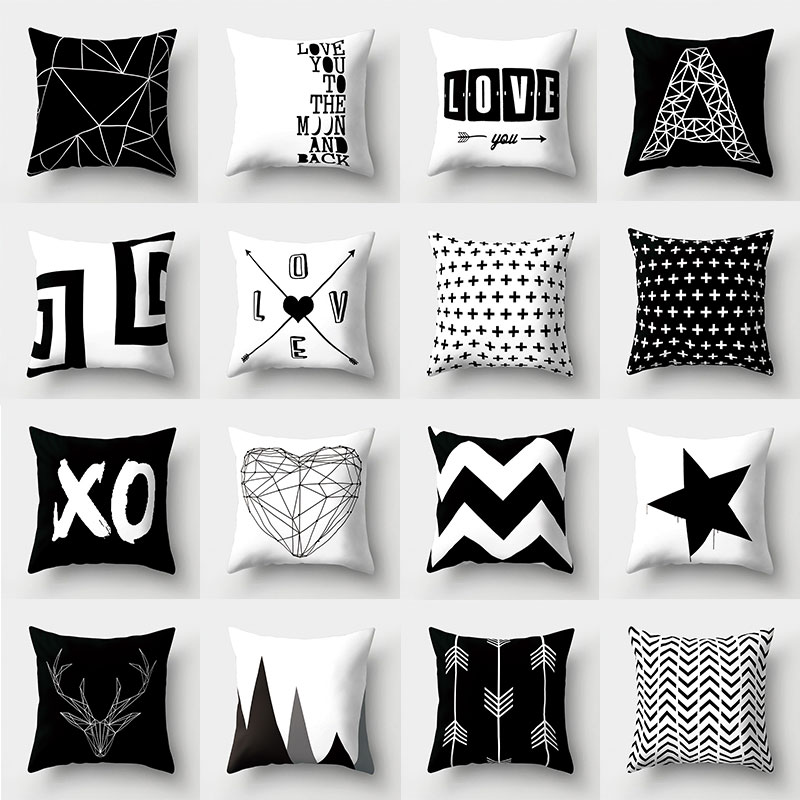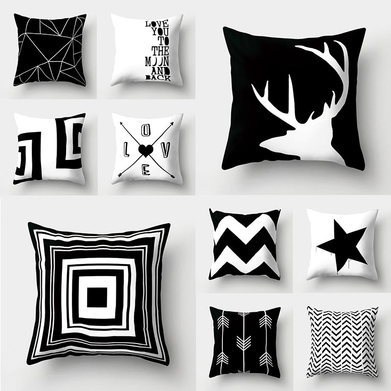 Декоративные подушки для дома, наволочки из полиэстера, черно-белый чехол для подушки