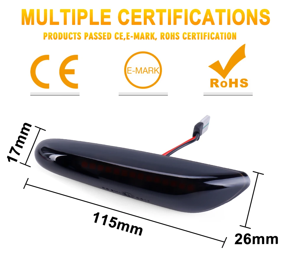 Автомобильный мигалка светодиодный фонарь Canbus указатель поворота динамический последовательный боковой маркер светильник Посылка включает в себя: 2 шт. боковой маркер светильник указатель поворота светильник Подходит для следующих типов транспортных средств: Для BMW E82 Coupe (1 серия 08-13, не 1 м) Для BMW E83 (X3 серии 04-10) Для BMW E84 (серия X1 13-15) Для BMW E88 Cabriolet (1 серия 08-13) Для BMW E46 Sedan (3 серии Facelift 02-05) Для BMW E46 Wagon (3 серии Facelift 02-05) Для BMW E90 Sedan (3 серии 06-11, не M3) Для BMW E91 Wagon (3 серии 06-12) Для BMW E92 Coupe (3 серии 07- 12, не M3) Для BMW E93 Cabriolet (3 серии 07- 12, не M3) Для BMW E60 Sedan (5 Series 04-10) Для BMW E61 Wagon (5 серия 04-10)