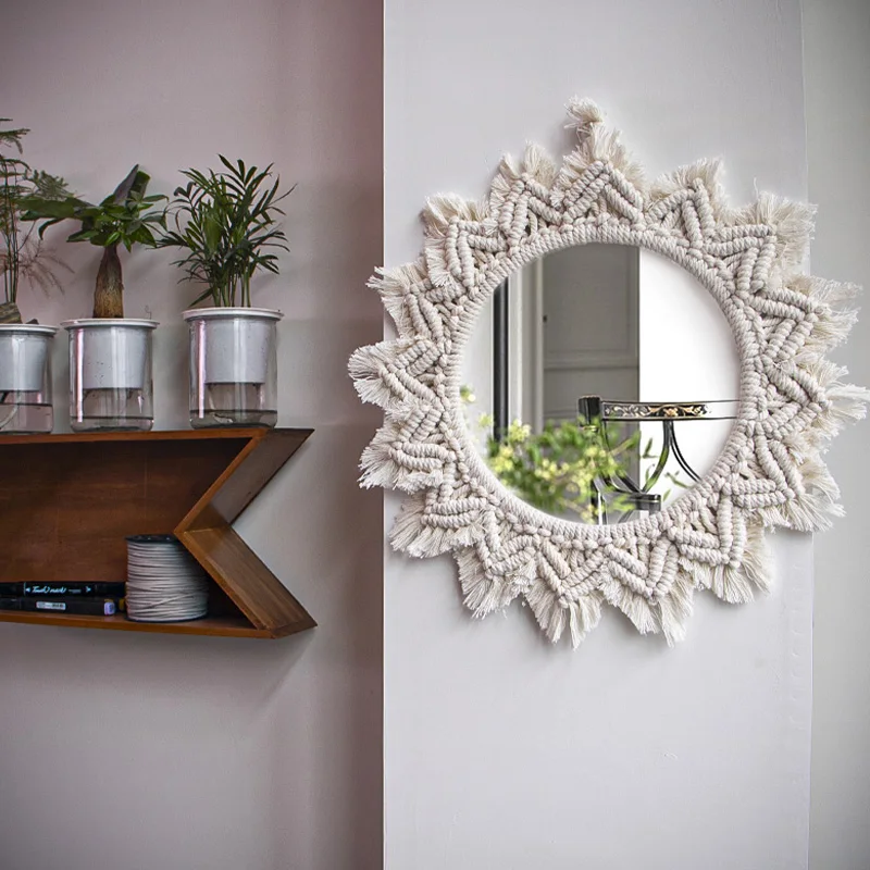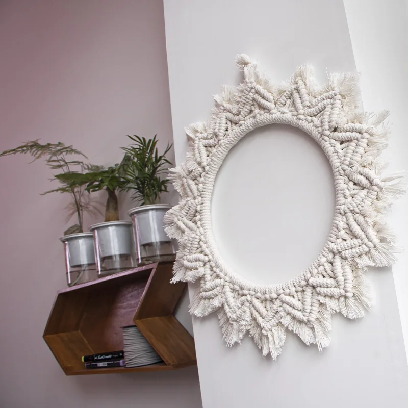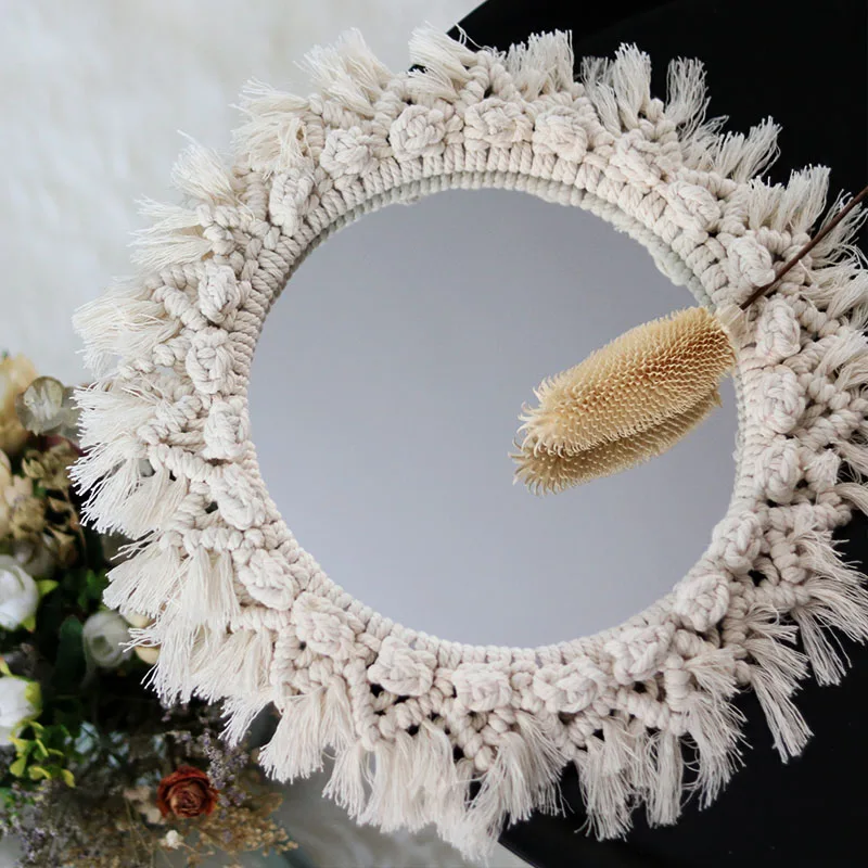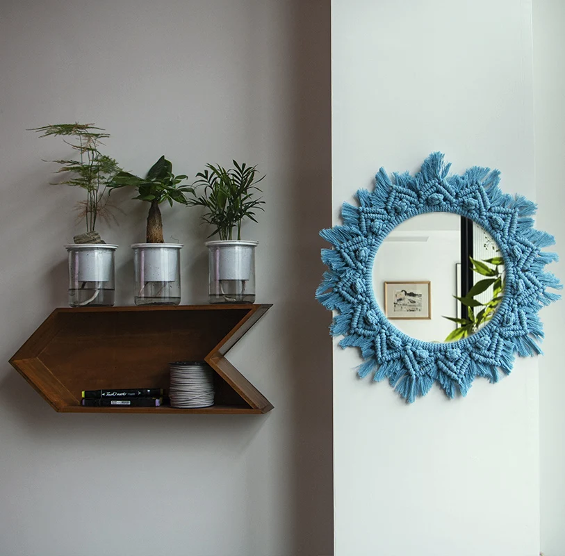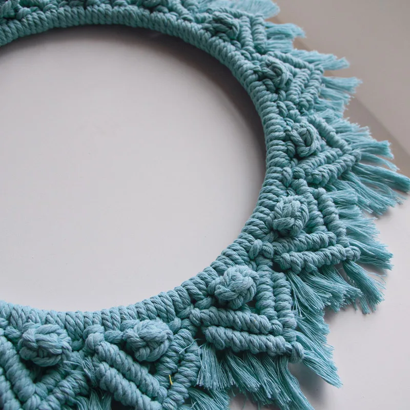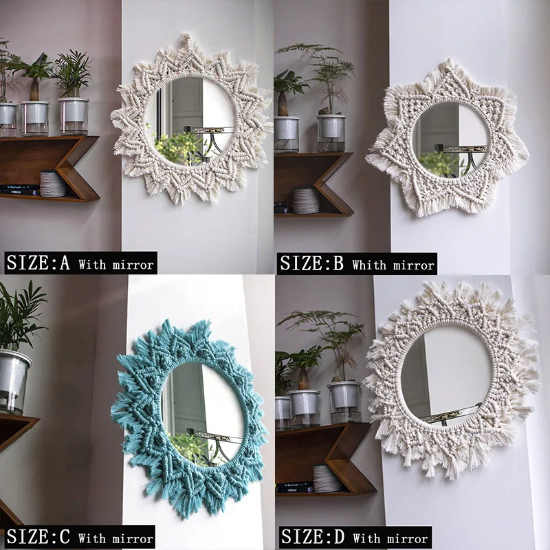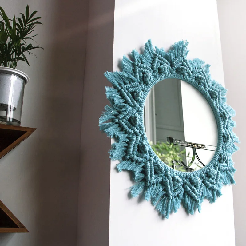 1. Ручная работа 2. Большая настенная декоративная 3.OEM и ODM приветствуются. Поскольку мы являемся фабрикой. Если вам нужен любой размер или любой цвет, пожалуйста, свяжитесь с нами 4. Прямая доставка приветствуется, пожалуйста, свяжитесь с нами. Спасибо 5, у нас есть много видов зеркал макраме
