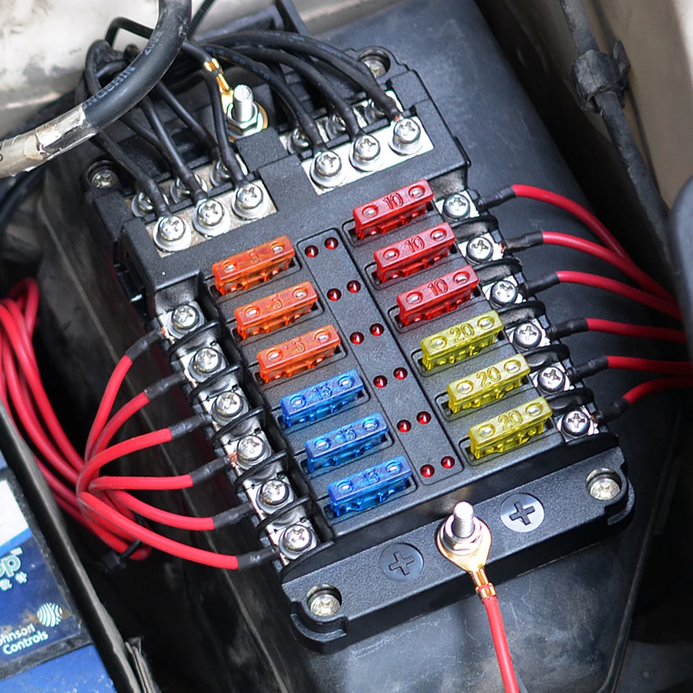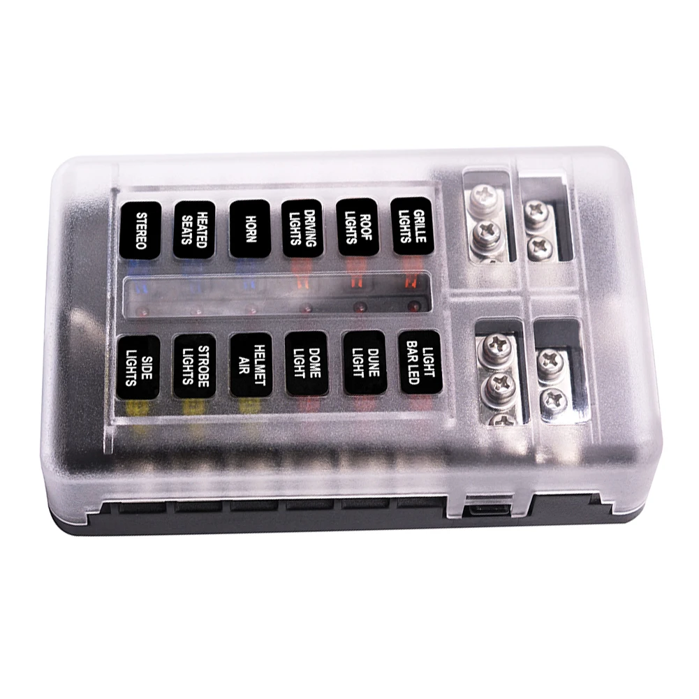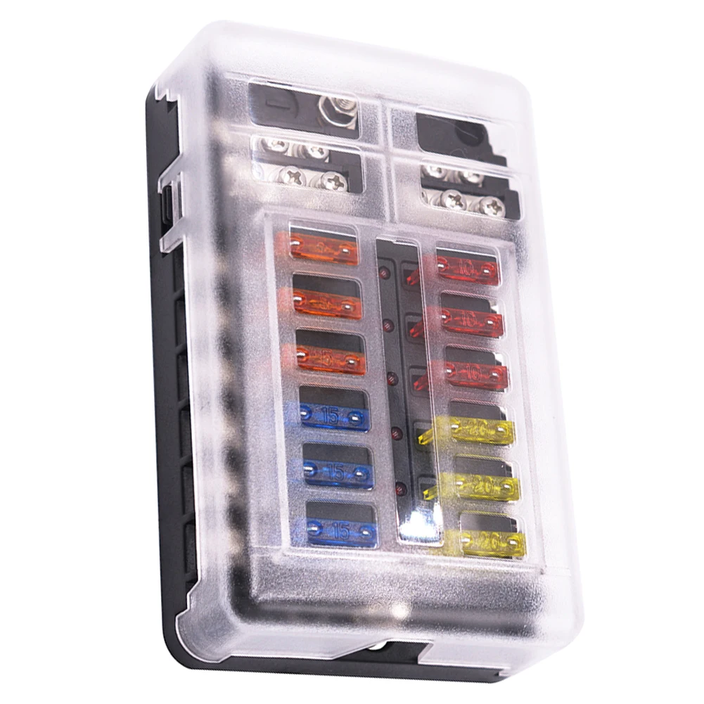 12V 32V 12 Way Blade Fuse Box, держатель блока, светодиодный индикатор, автомобильный, морской, водонепроницаемый