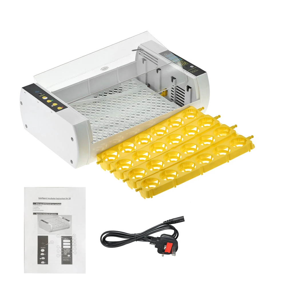 ЭТОТ автоматический умный инкубатор, который может держать 24 яйца одновременно, подходит для инкубационного курицы, утки, Перепелиных яиц, другой птицы и птичьих яиц. Цифровой дисплей температуры, влажности и дня обратного отсчета для четкого наблюдения. Встроенный яичный Тернер и умный контроллер температуры. Идеально подходит для домашнего, лабораторного или учебного использования!