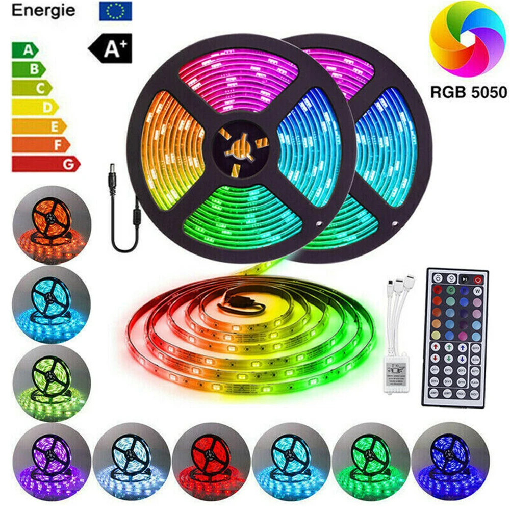 16.4FT 150 светодиодная лента для светодиодной ленты с наибольшем световым потоком 12В, светодиодные фары лента SMD5050 RGB гибкая светодиодная гирлянда с пультом дистанционного управления для ТВ вечерние бар