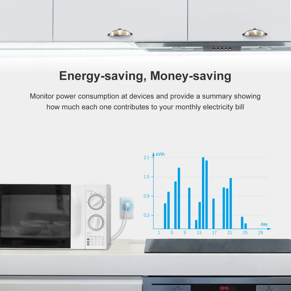 * Энергосбережение, экономия денег: Контролируйте потребление энергии устройств и представляйте сводку, показывая, сколько каждый из них вносит свой ежемесячный счет на электроэнергию.