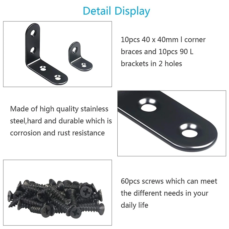 Прочные и прочные: черные угловые скобки изготовлены из высококачественной нержавеющей стали, прочные, устойчивые к коррозии и ржавчине, остаются в течение длительного времени.