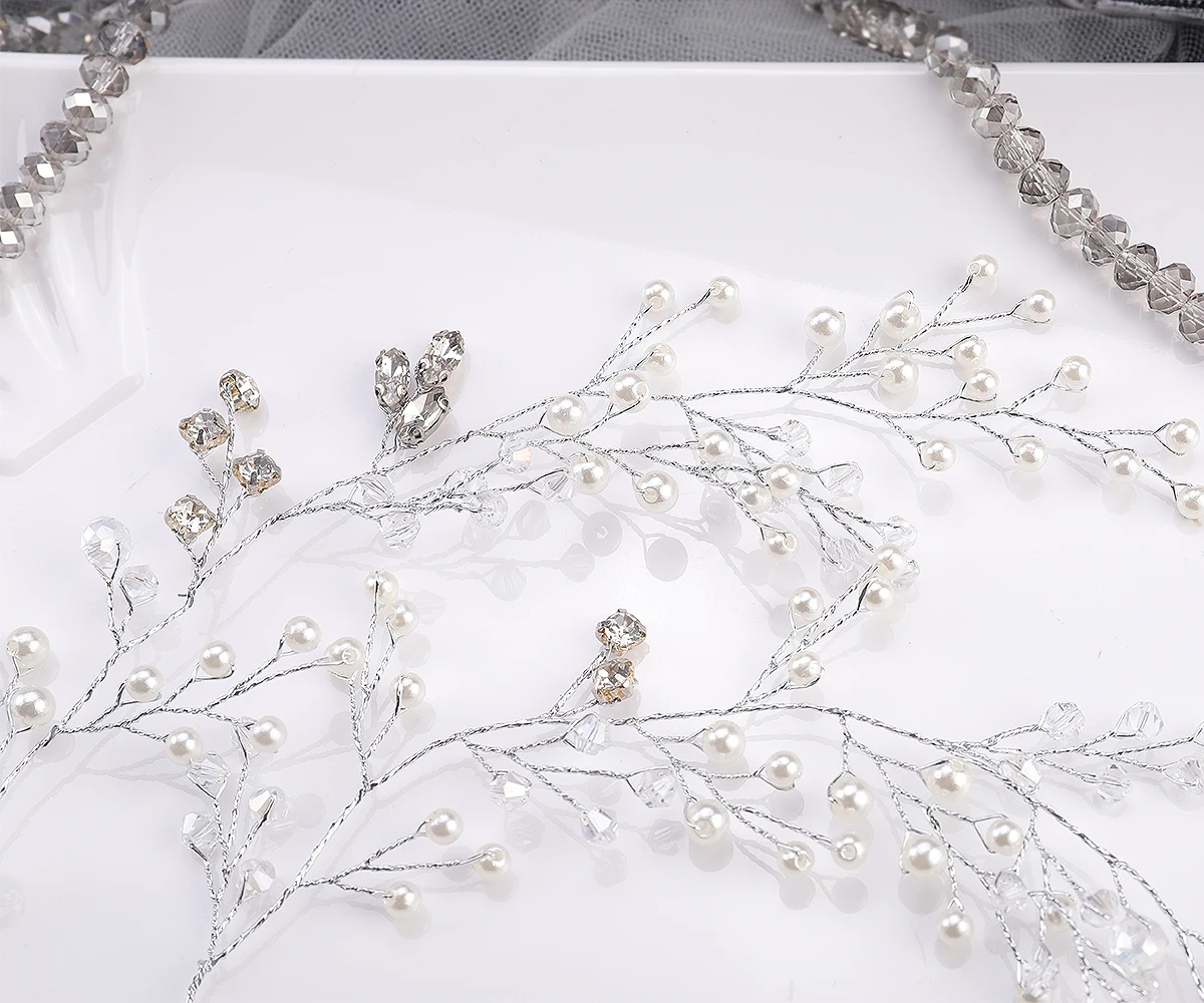 Материал: серебряная проволока, искусственный жемчуг и искусственный кристалл