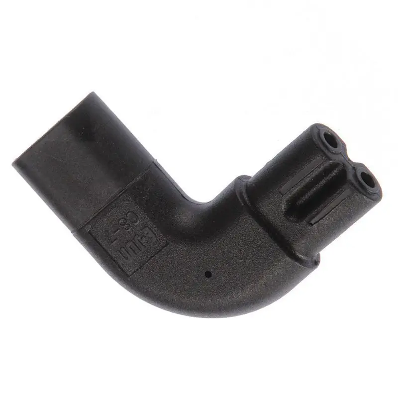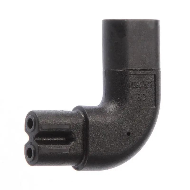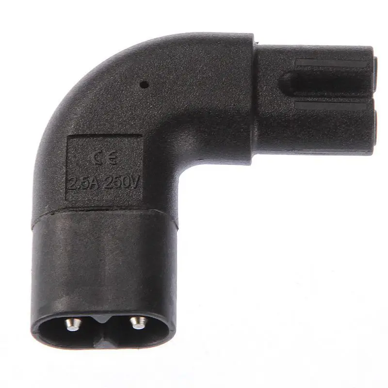 • IEC320 C8 Штекерный C7 женский угол 90 градусов угловой адаптер питания 110 250 В|Адаптеры - Фото №1