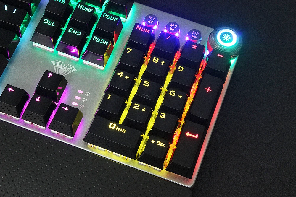 Кроме того, вы можете сделать свой собственный свет в соответствии с вашими предпочтениями. После нажатия кнопки M в течение 3 секунд индикатор на ручке мигает, чтобы включить клавиатуру, а затем нажмите кнопку M, чтобы подтвердить ее.