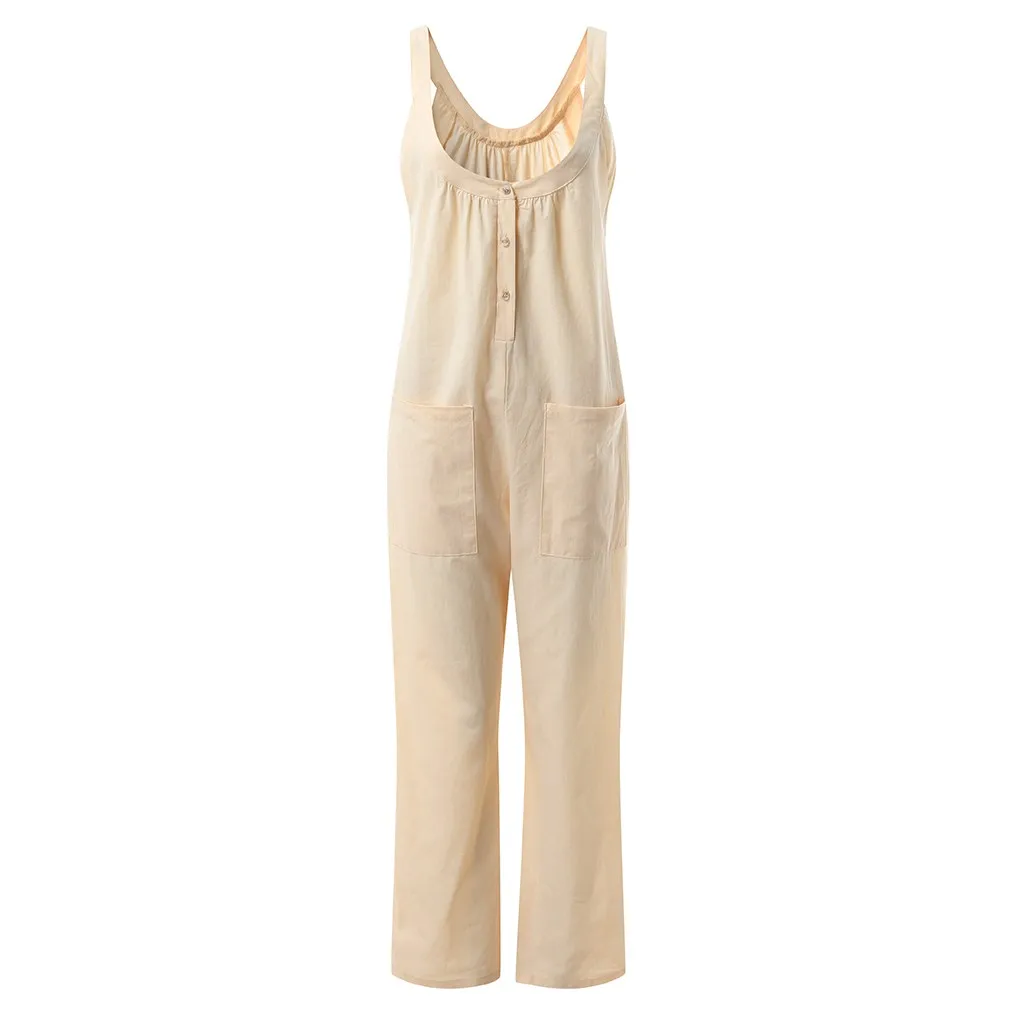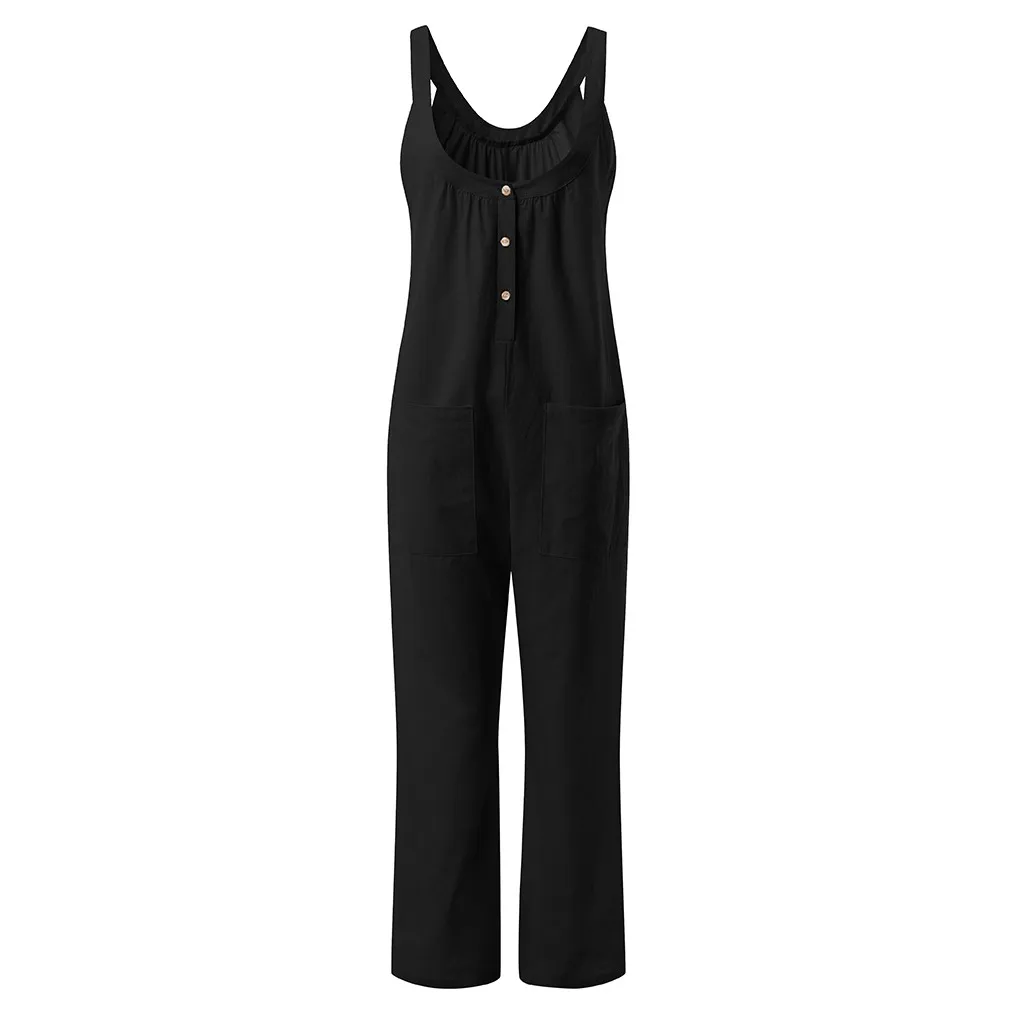 Летний комбинезон, Женский Повседневный Комбинезон, повседневный однотонный комбинезон с карманами, длинный комбинезон на пуговицах, комбинезоны monos mujer