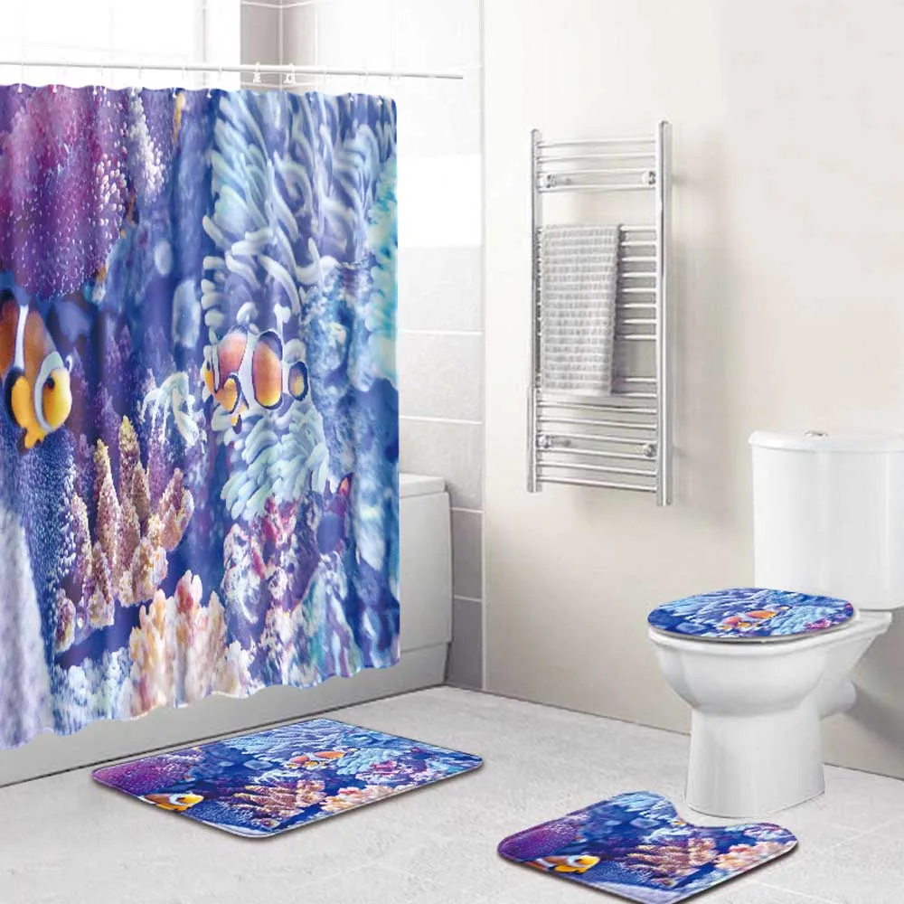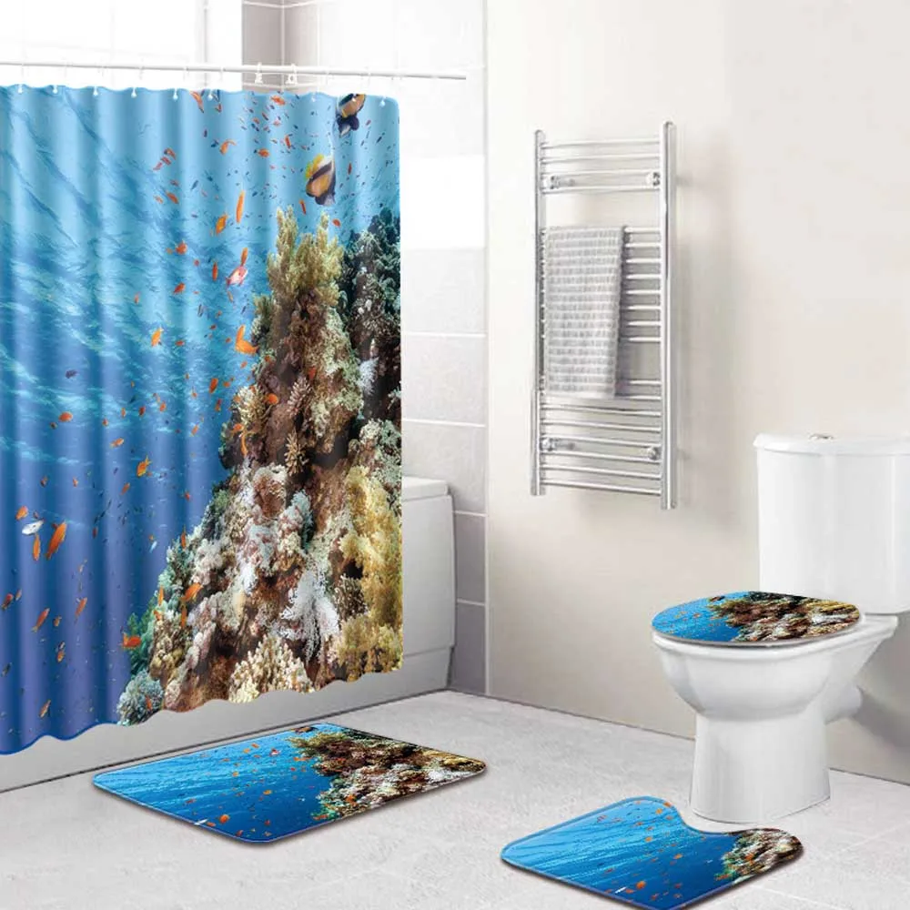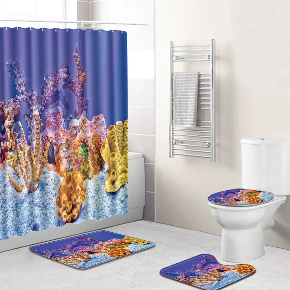 Набор штор для душа из кораллового океана Нескользящие коврики Крышка для унитаза и коврик для ванной подводный мир водонепроницаемый комплект штор для ванной комнаты