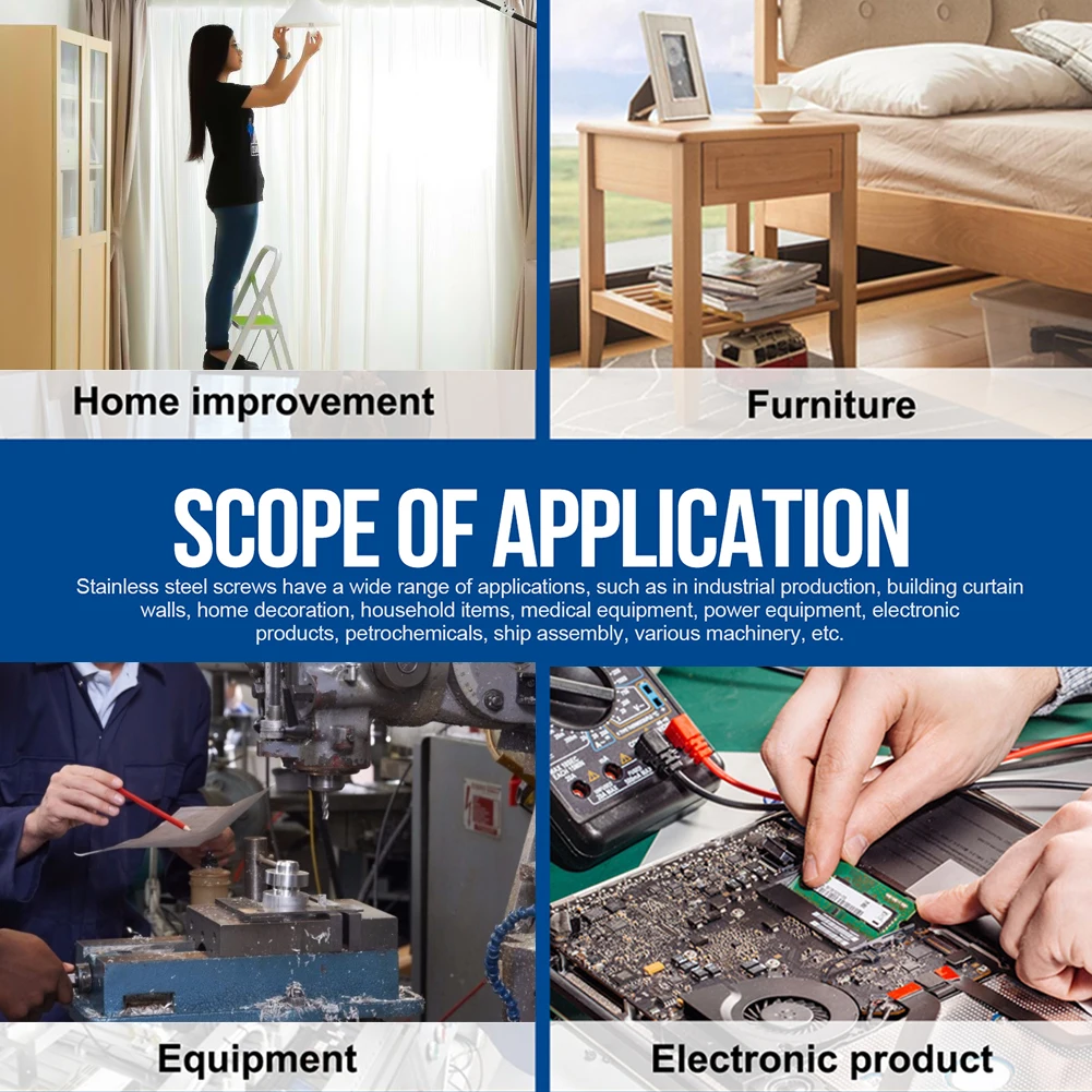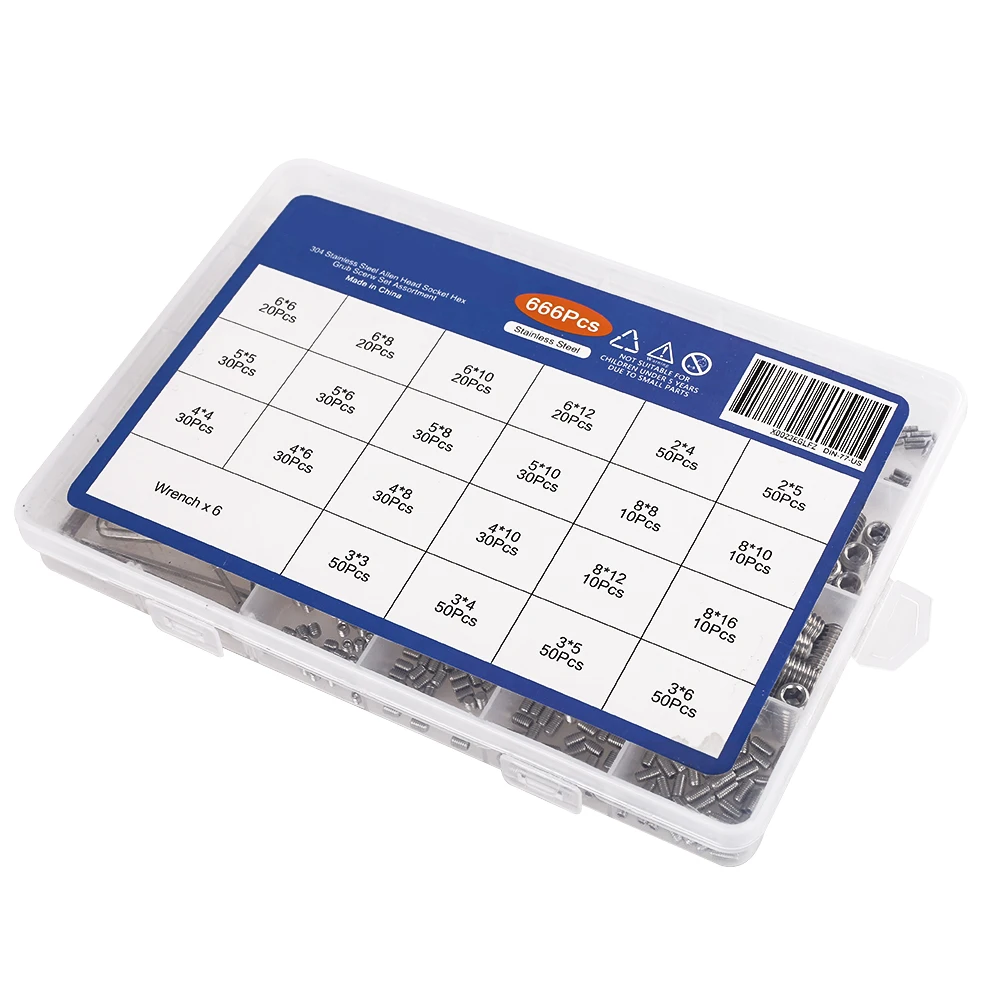 1. Высокое качество ---- 304 нержавеющая сталь Внутренний шестигранный привод набор винтов набор, устойчивый к коррозии.