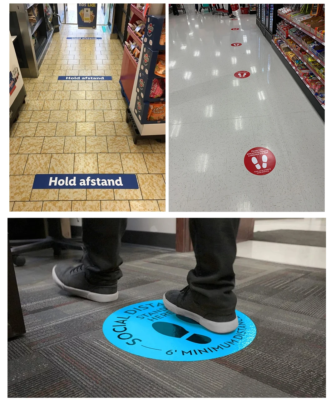 1. Очистите пол от грязи и мусора и убедитесь, что он сухой. 2. Снимите наклейку с тыловой бумаги. 3. Поместите наклейку на пол в нужное место. 4. Нажмите наклейку на пол, начиная с середины и двигайтесь наружу, используя руки, кредитную карту или Ракель. 5. Нажмите на края.