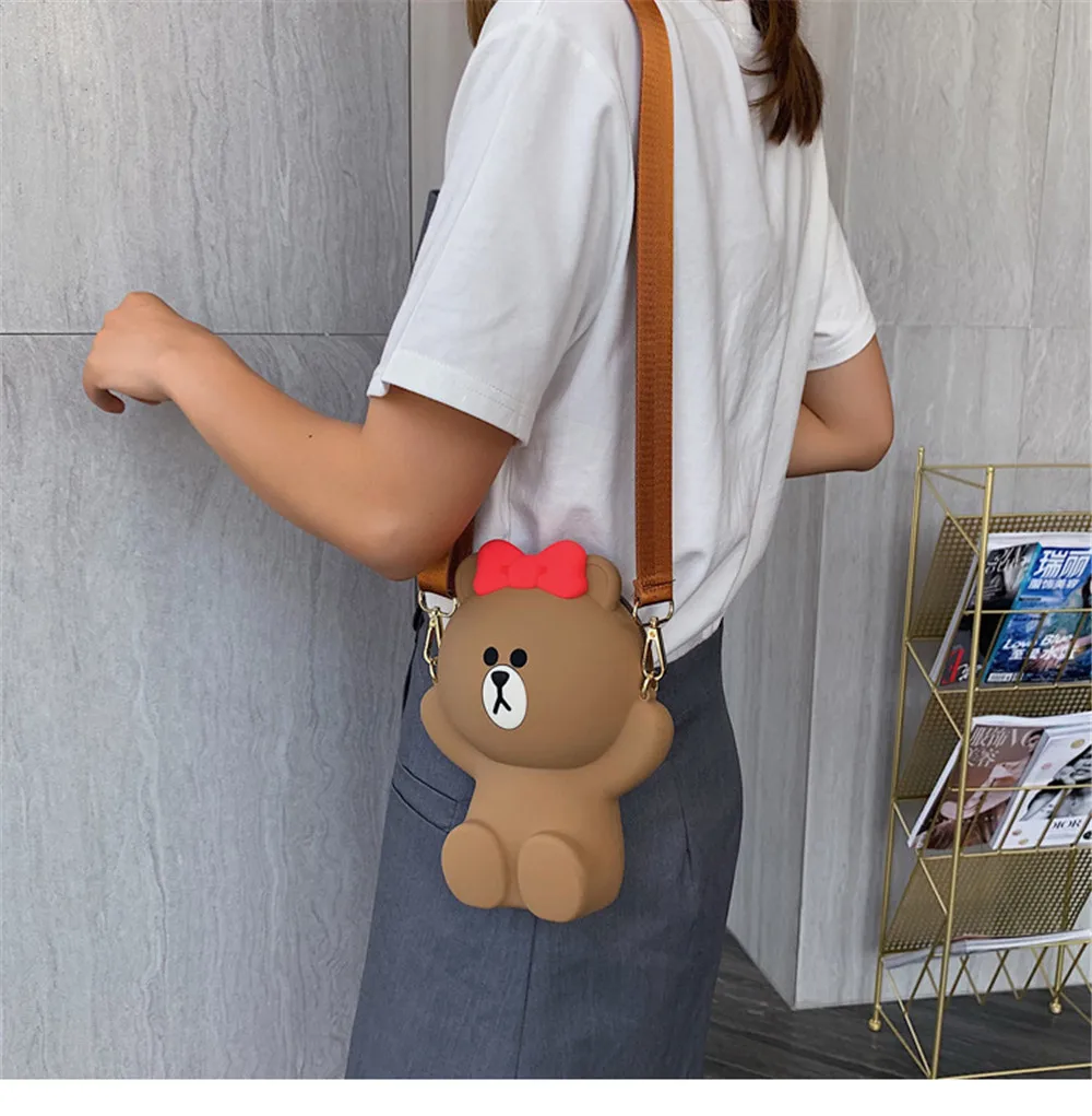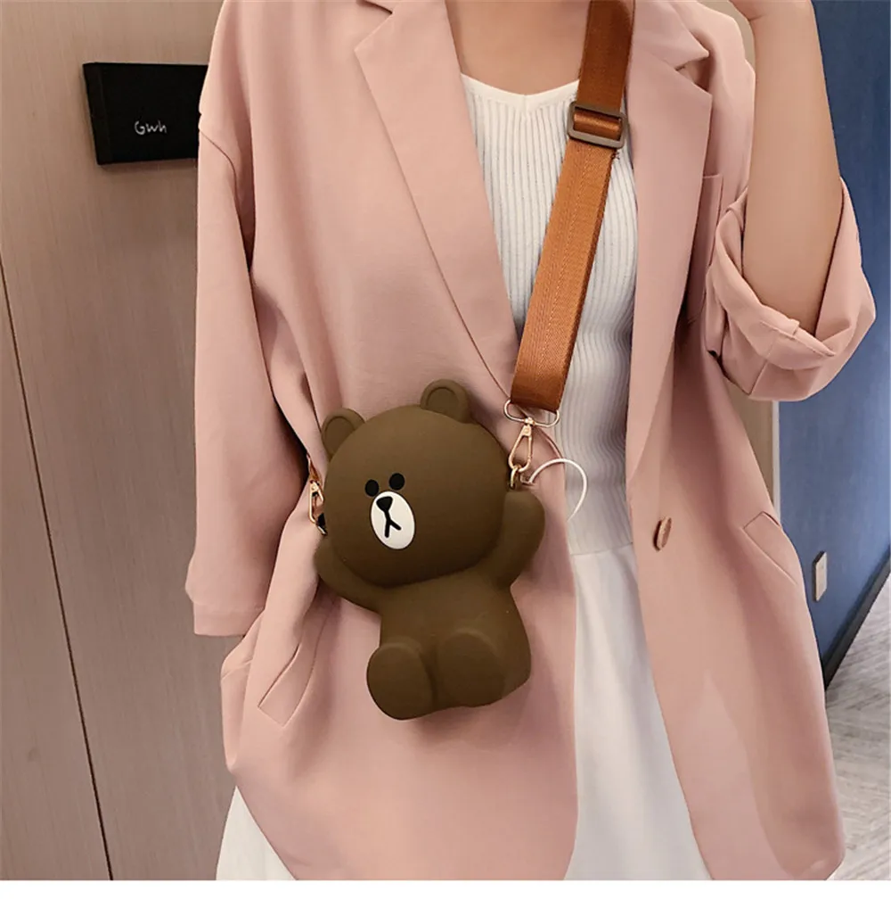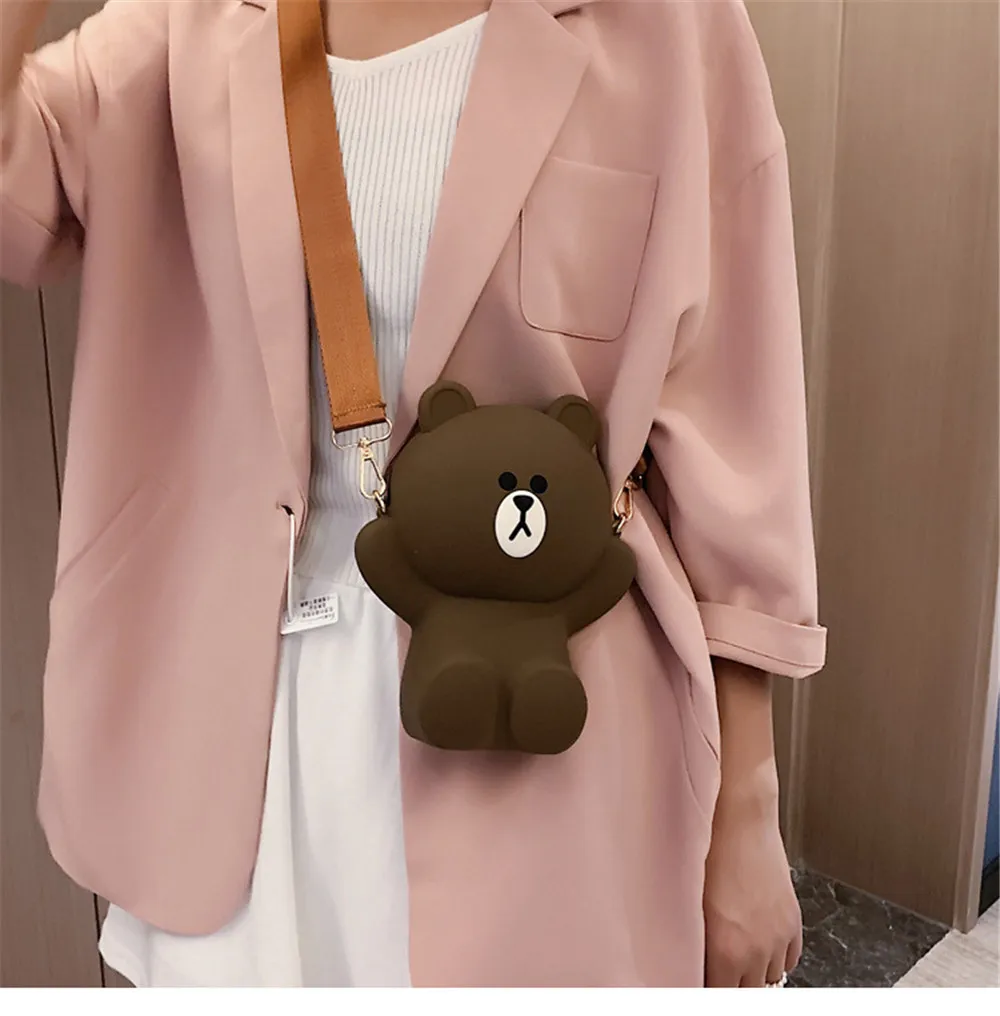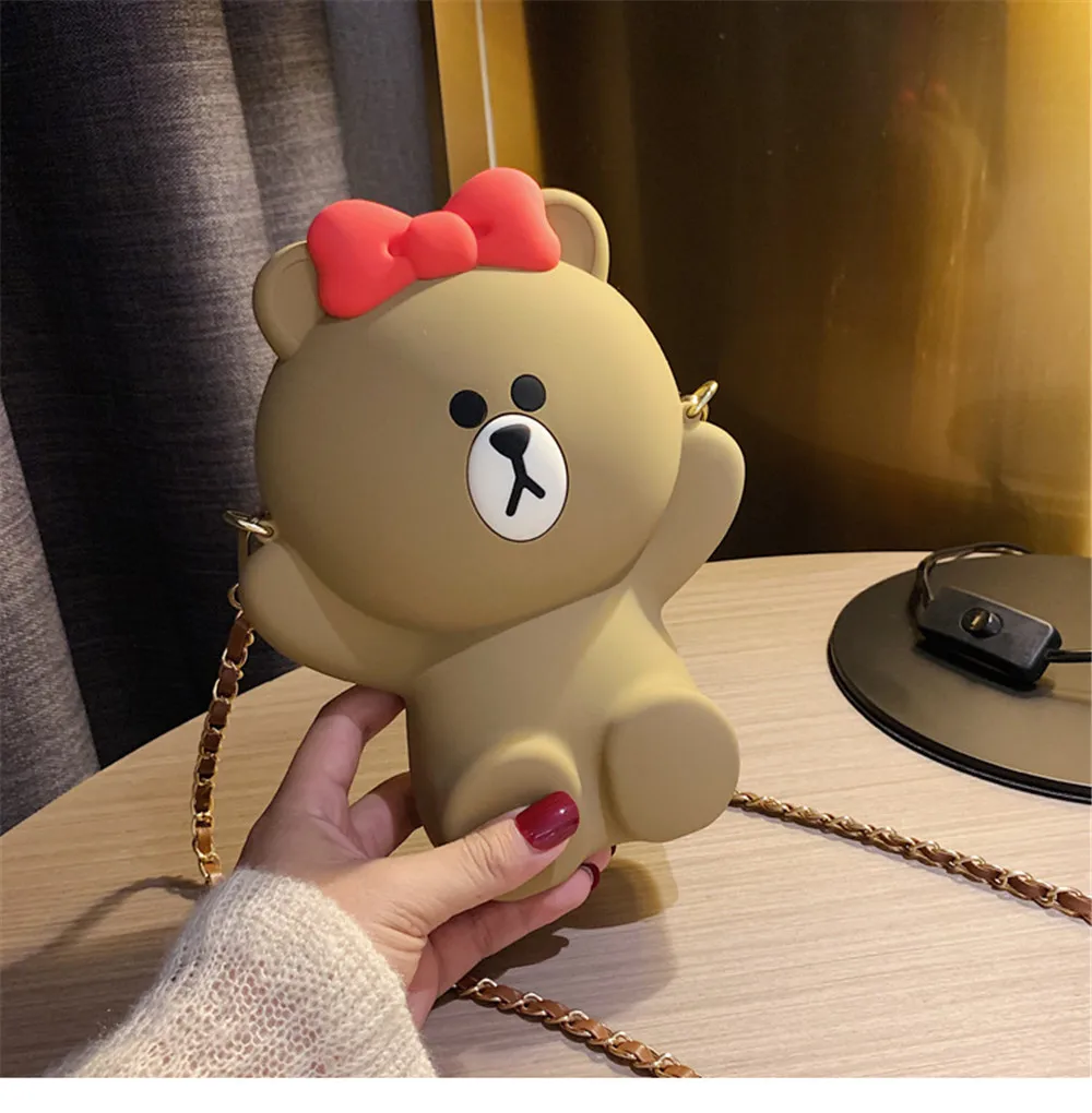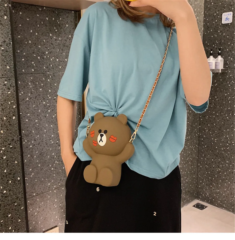 Новая женская сумка с мультяшным медведем, сумка на плечо, Диагональная Сумка, милая сумка с цепочкой