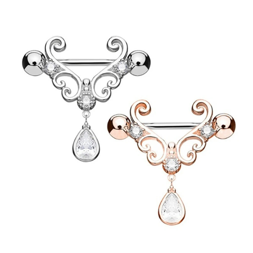 Модное кольцо-Штанга из нержавеющей стали с цирконом, украшение для пирсинга сосков