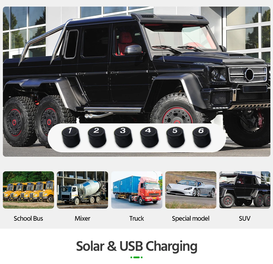 Интеллектуальное солнечное TPMS давление в автомобильных шинах. Точное раннее предупреждение, более безопасное вождение, более уверенное.