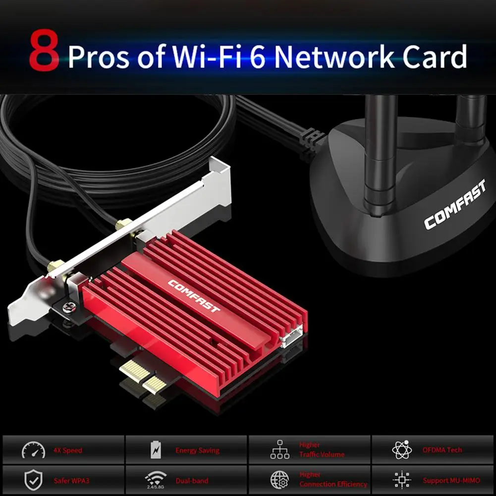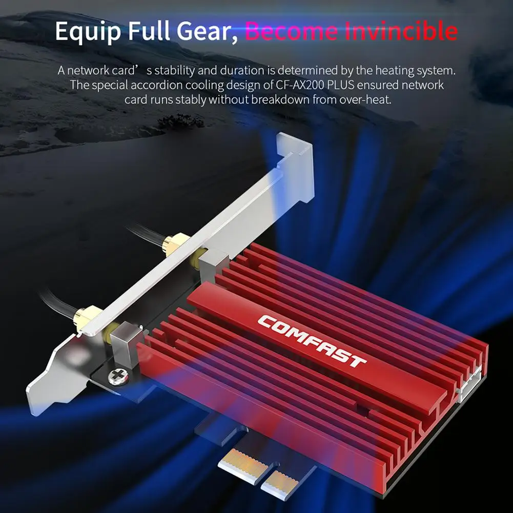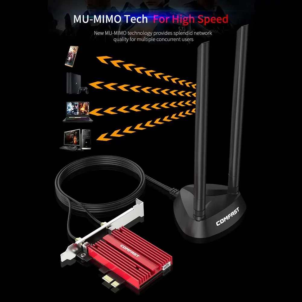 1. Практичный в использовании: Wi-Fi карта оснащена технологией Wi-Fi 6, новейший стандарт Wi-Fi 6 обеспечивает исключительную скорость, ультра-низкую задержку и бесперебойное соединение с помощью технологии OFDMA и MU-MIMO. Технология Wi-Fi 6 следующего поколения, CF-AX200 Plus разработана, чтобы быть самой оживленной развлекательной сетью нового поколения.