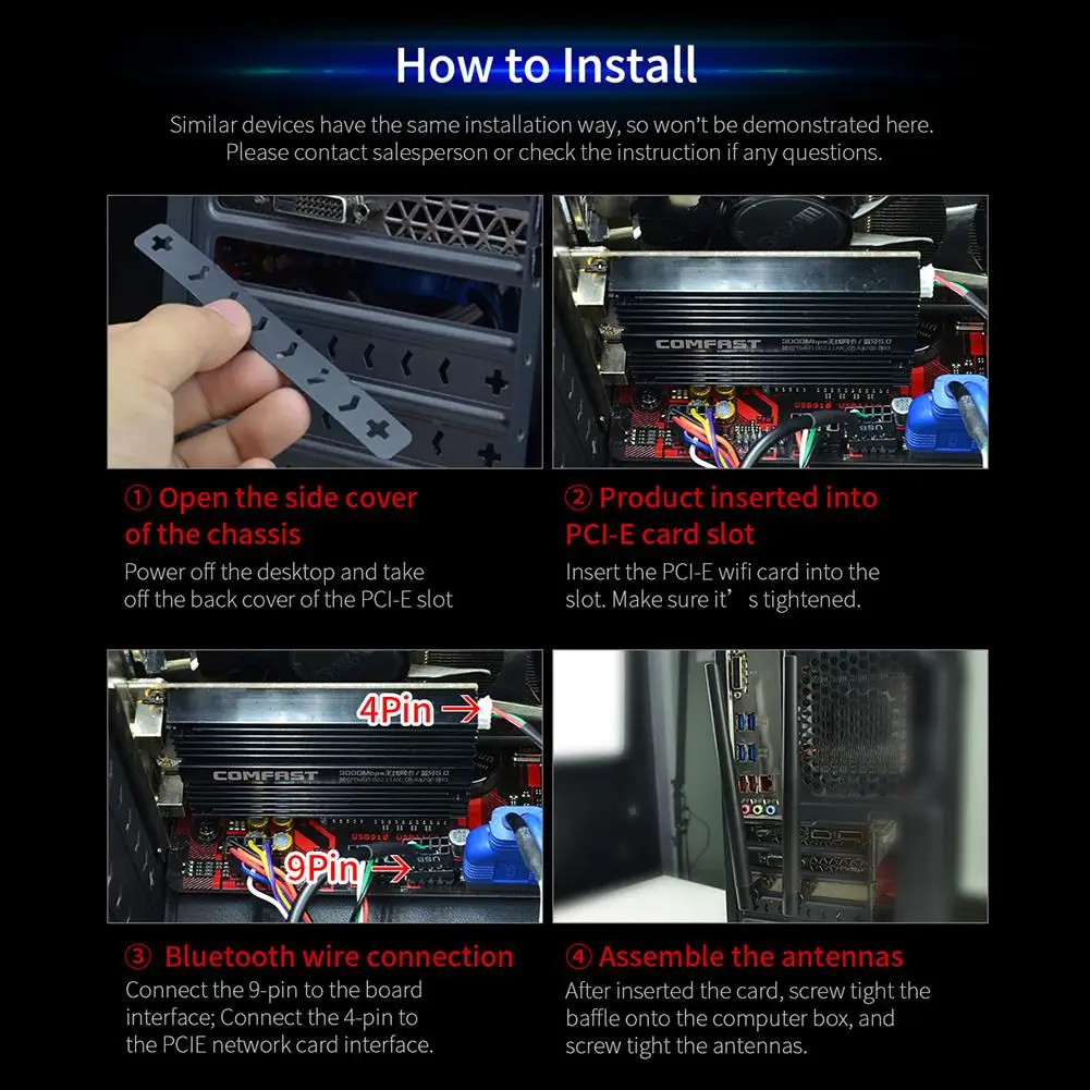 2. Отлично подходит для использования: Wi-Fi карта обеспечивает скорость до 2 4 Гбит/с, достигая невероятной скорости, до 2 4 Гбит/с (2402 Мбит/с для 5 ГГц или 574 Мбит/с для 2 ГГц)-Поддерживает Windows 10 (64-бит).