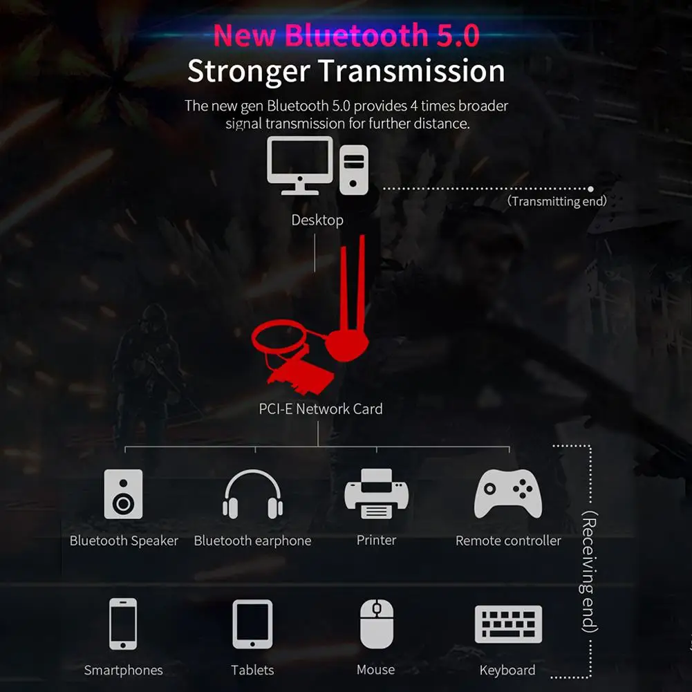5. Bluetooth 5,0 дизайн: Bluetooth 5,0 используется для большей скорости и покрытия. CF-AX200 Plus оснащен новейшей технологией Bluetooth 5. По сравнению с Bluetooth 4, его скорость увеличивается в 2 раза, а его охват увеличивается в 4 раза. 2. Подключите по мере необходимости столько устройств, включая игровые гарнитуры и клавиатуры, для максимальной настройки.