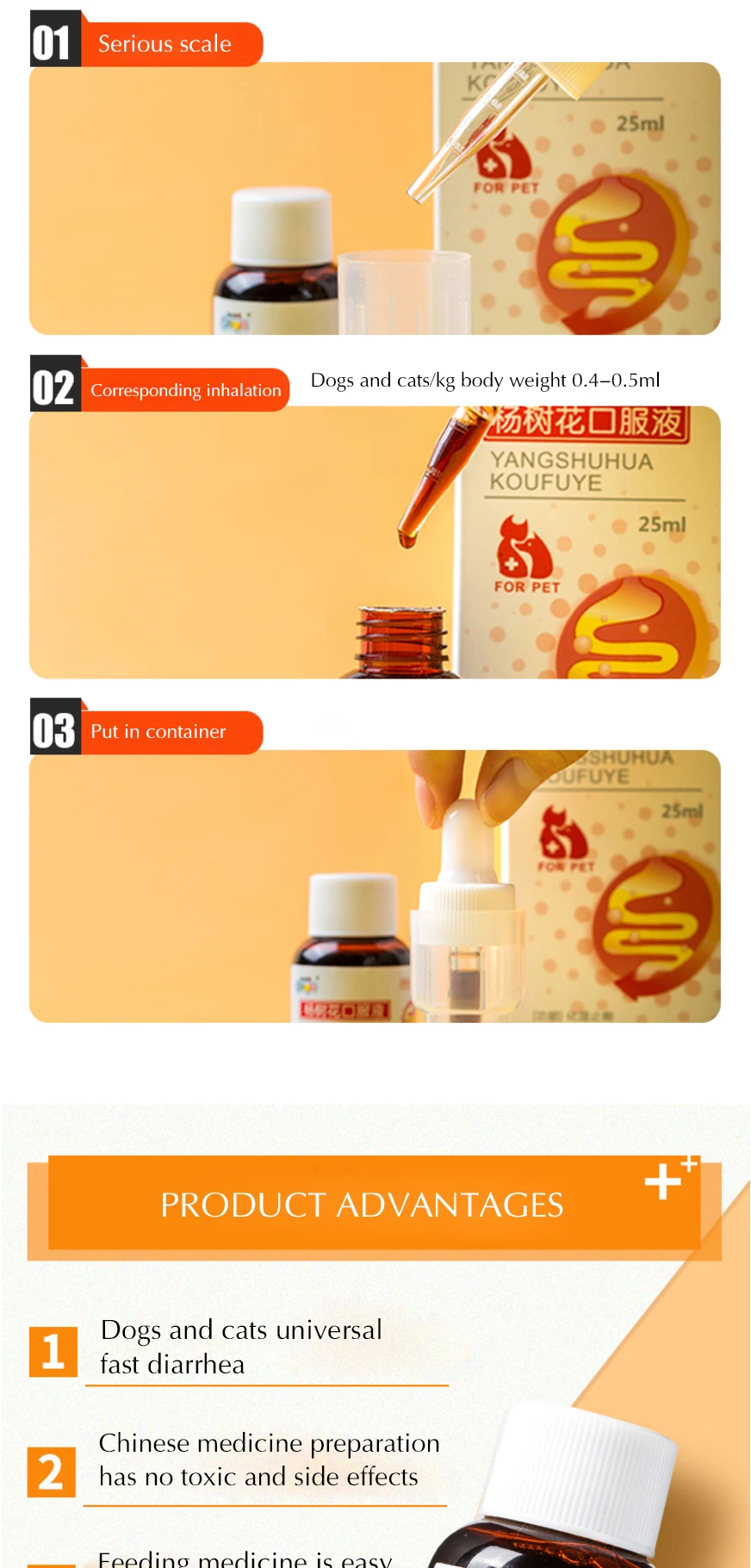 Название продукта: Тополь пероральная жидкость Состав: цветок тополя Свойства: красновато-коричневая прозрачная жидкость Функция: гидратация и дизентерия Показания: дизентерия энтерита Использование объекта: собака кошка кролик Срок действия: 2 года Номер утверждения: слово ветеринарной медицины (2014) 220385030 Меры предосторожности: Ограничение применения после изменения свойств лекарственных средств Осаждение в течение длительного времени, равномерно использовать его, не влияя на эффект После открытия бутылки, затяните и храните ниже 10 градусов Держите рот бутылки и капельницу в чистоте Универсальный Быстрый понос собак и кошек Подготовка китайской медицины не имеет токсичных и побочных эффектов Лекарство для кормления легко ухаживает за желудком Регулярные Ветеринарные препараты безопасны и безопасны