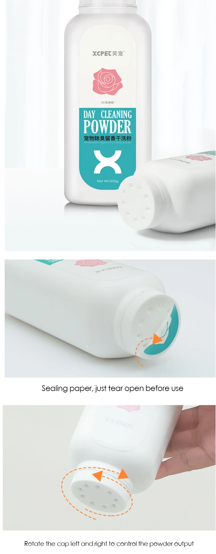 Порошок для сухой чистки домашних животных Без стирки, очистки, дезодорирования и стерилизации Информация о продукте Наименование: порошок для сухой чистки домашних животных Целевые пользователи: Домашние животные Срок годности: 3 года Содержание нетто: 300 г Эффективность: дезодорант и аромат, уход за кожей, удаление клещей и убивает клещей, бактериостаз и зуд 4 функции для вас на выбор Антибактериальный Тип дезодоранта Аромат розы Содержит мягкие и высокоэффективные бактериостатические вещества, эффективно подавляет различные бактерии на поверхности тела, снимает зуд, удаляет Дандер и делает волосы чистыми и гладкими Тип ухода за чистой кожей Жасмин Выбор ингредиентов растительной эссенции, питает нижний слой мышц и волосяных фолликулов, и может быстро проникать в слой волос для очистки и обеззараживания, смягчать волосы, поглощать поверхностные масла, удалять запахи, мягкий и не раздражает Тип клещей Лимонный аромат Питает волосы сбалансированным образом, проводит глубокое удаление клещей, эффективно предотвращает зуд, вызванный домашними животными, инфицированными клещами, сеточными железами, чешуйками, выпадением волос, papules, делает волосы чистыми и гладкими Противовоспалительный и зуд Освежающий мятный Содержит мягкие и высокоэффективные бактериостатические вещества, эффективно подавляет поверхностные бактерии, снимает зуд, устраняет кожное сало, уменьшает воспаление и снимает зуд, делая волосы сухими и гладкими
