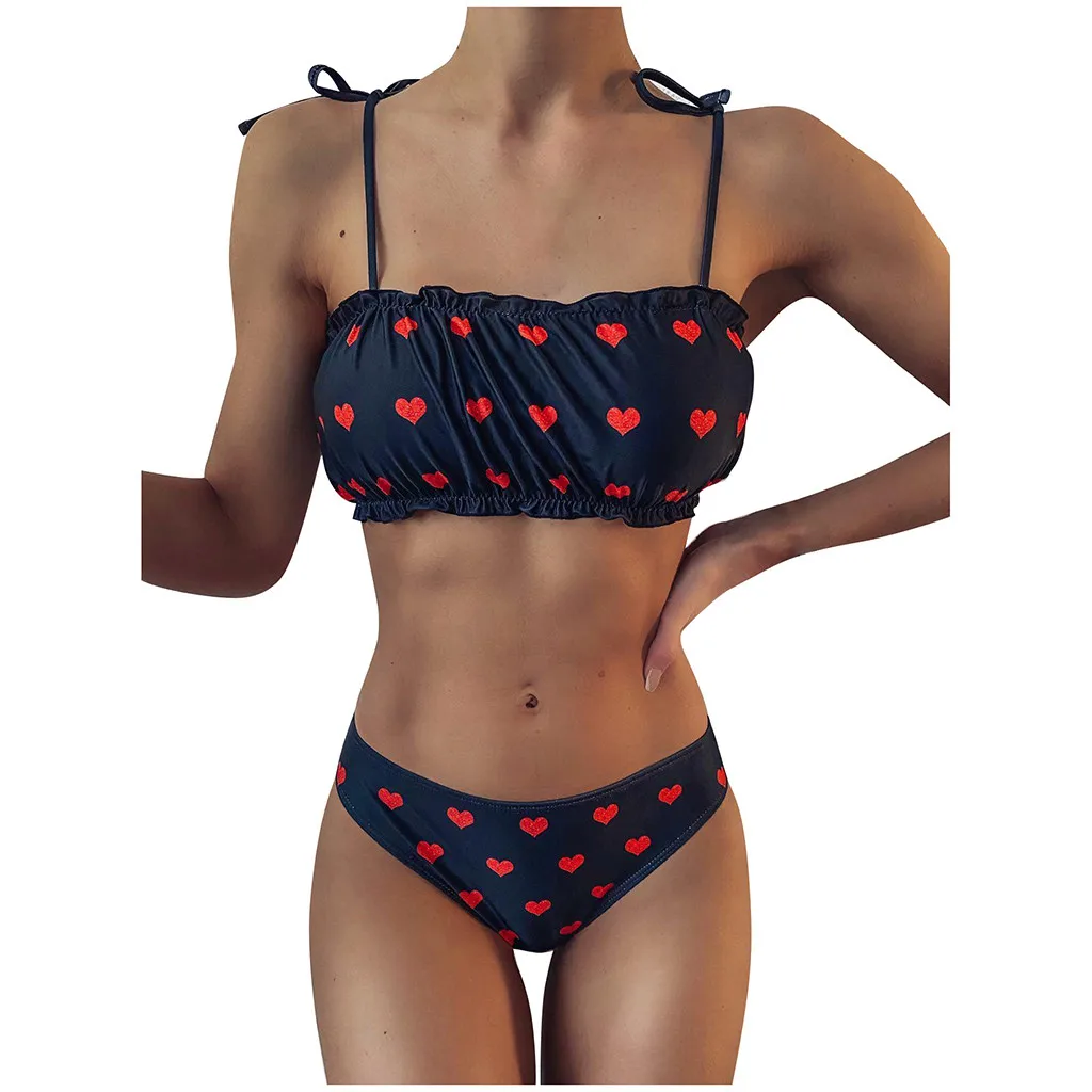 Новинка 2020, сексуальный комплект бикини для женщин, пуш-ап, пляжный купальный костюм, женский купальник с принтом сердца, два предмета