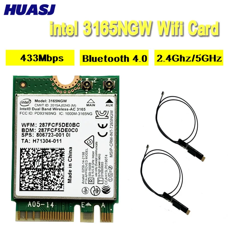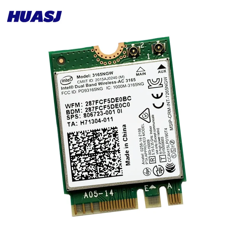 Intel Wireless-AC 3165 Wifi Bluetooth 4,0 802.11ac карта Описание: дешевле Бренд: Intel Модель: Беспроводная-AC 3165 3165NGW Bios: стандартная/открытая версия (совместима со всеми брендовыми ноутбуками, не включает IBM / HP / Lenovo); Класс устройства: 802.11ac; NGFF / M.2 интерфейс (22*30 мм); Скорость до 433 Мбит/с; С Bluetooth 4,0; Двухдиапазонный: 2,4 ГГц Wi-Fi 5 ГГц; Совместим с: Совместим практически со всеми слотами NGFF, Acer, Dell, Asus Samsung Toshiba ect; Я не поддерживаю IBM Thinkpad / Lenovo / HP