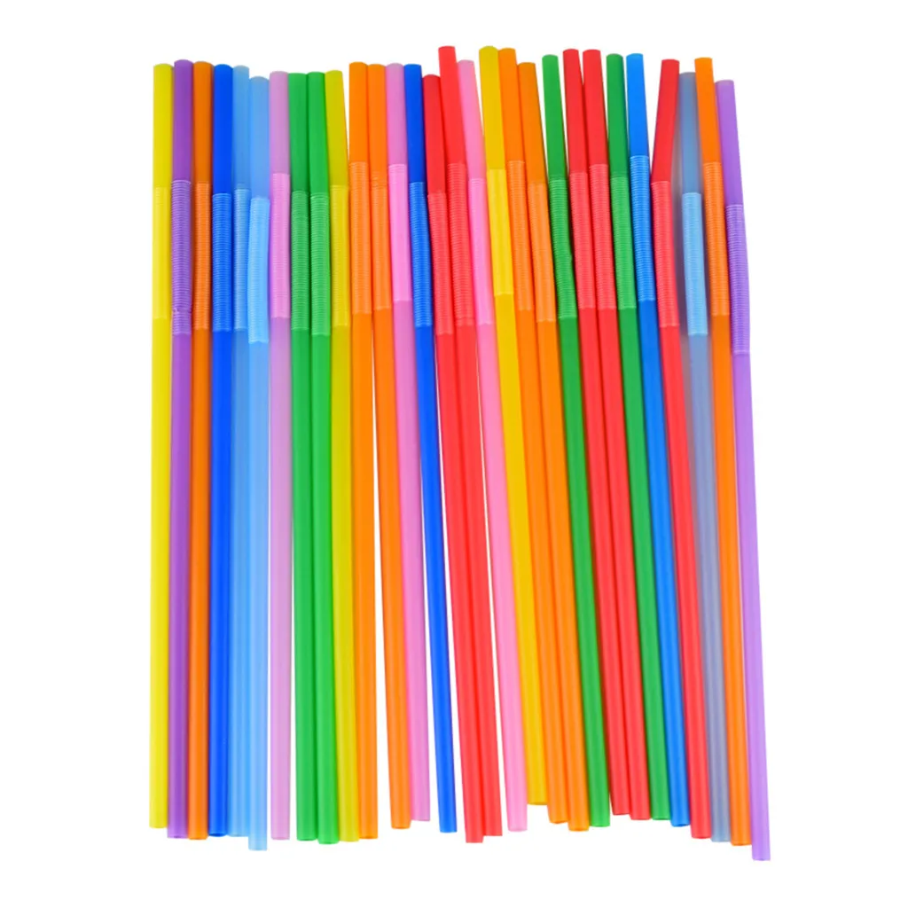 [300 упаковок] гибкие одноразовые пластиковые соломинки для питья-разные цвета