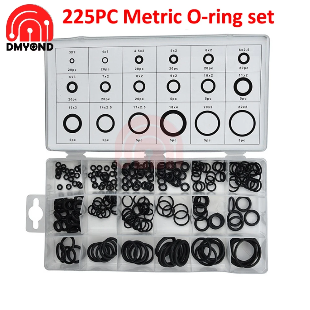 225 шт. резиновое уплотнительное кольцо ремонтная коробка уплотнительное кольцо шайба уплотнения Водонепроницаемость Ассортимент 18 различных размеров с Plactic коробка комплект для автомобиля