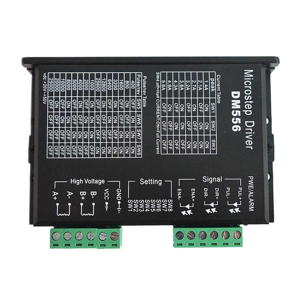 Драйвер используется Дискретная структурой компонентов, до тех пор, пока не перенапряжения и проводки является правильным, пожалуйста, будьте уверены, что двухфазный 4-провод, 6 проводов, 8-жильный может использоваться. 57 серий 4.5A или меньше (включая 4.5A) двухфазный четырехпроводной, Шестипроводной, 8-проводной шаговый двигатель также может быть использован