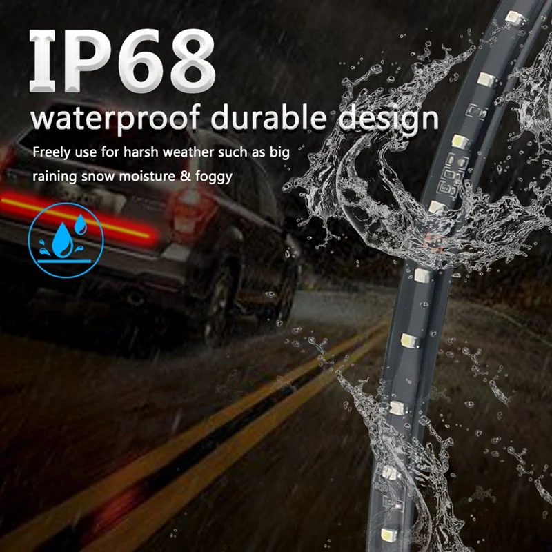 FULL FUNCTIONS - Features full functions of brake, turn signal, running, reverse and strobe light. The Triple-row tailgate light emits low Red for running, Bright Red for braking, Red for left/right turning signals, White for reversing. Let everyone behind you clearly knows what's your next step!