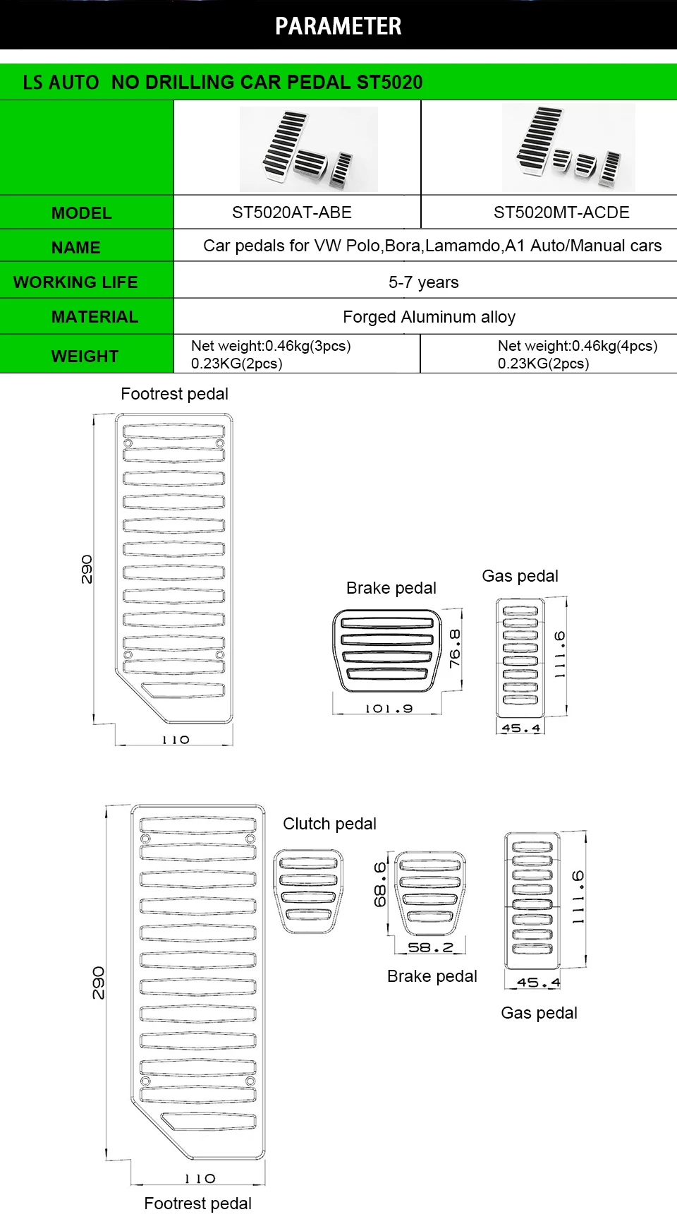1 шт. педаль газа 1 шт. педаль сцепления 1 шт. педаль тормоза 1 шт. педаль для ног