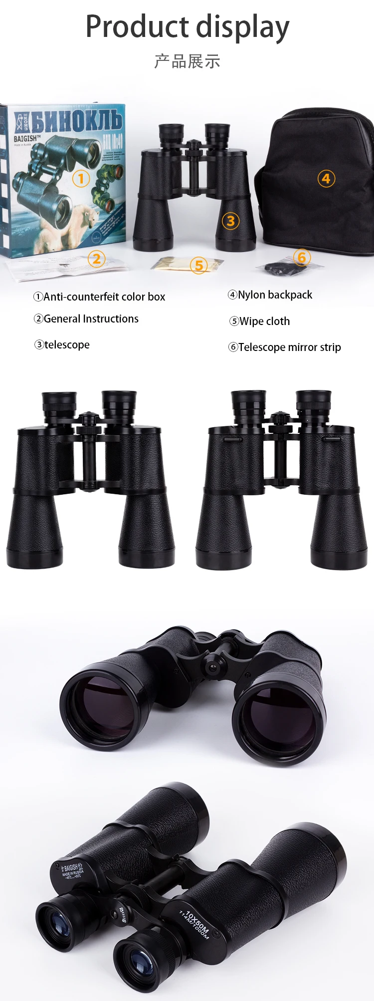 BAIGISH телескоп 10X50 Оригинальный русский военный бинокль мощный бинокль для охоты бинокль lll Ночное Видение телескоп высокой мощности