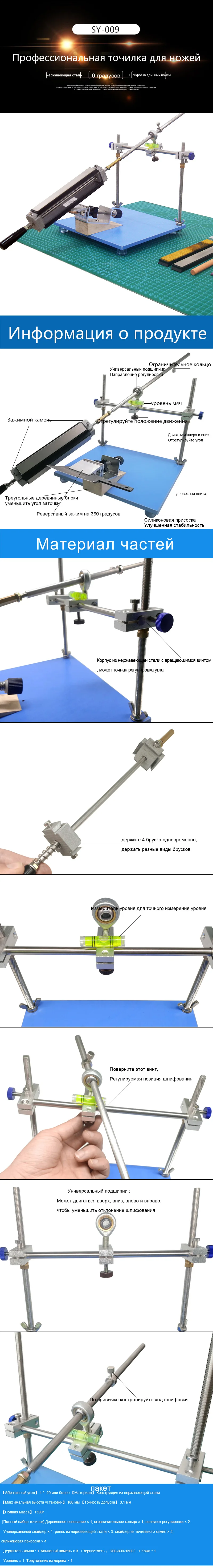 Это профессиональная точилка с фиксированным углом, которую мы разработали до сих пор. Он может шлифовать различные инструменты под самым маленьким углом. И ручка точильного камня имеет несколько функций, и может работать 4 различных точильных камня одновременно. И может держать любую длину точильного камня, более практично, чем точилка ruixin pro. Нет необходимости в любом операционном столе, его можно разместить в любом месте для полировки. Изысканная упаковка, полные инструменты для установки и аксессуары, и оснащено английской версией Руководства. В упаковке есть набор точилок, оснащенных камнями для заточки бриллиантов 200 #800 #1500 #, 1 воловьей лентой.