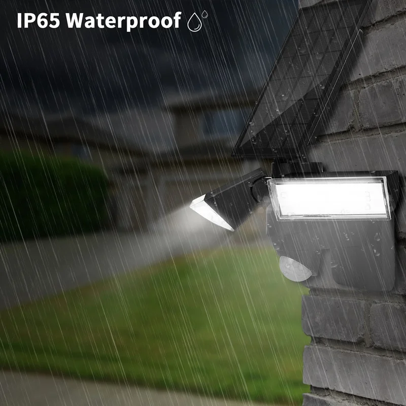 Параметры продукта: 1. Солнечная панель: 3,5 Вт; 5,5 В 2. Батарея: 4400 мА-ч 3,7 V 3. Расстояние и угол срабатывания: 10 метров и 140 ° 4. Эффект на светильник: высокая яркость 1400Lm; Микрояркость 200lm 5. Материал: АБС-пластик 6. Цветовая температура: 6300K 7. Водонепроницаемость: IP65 8,3 вида индукционных режимов, Индукционная головка с функцией индикаторного светильник, легко блокирует режим работы, который вы хотите 9. Дизайн рюкзака солнечной панели, может вместить провода, отказаться от беспорядка и защитить провода от повреждений 10. Двойная головка с регулируемым углом, освещает более широкую область