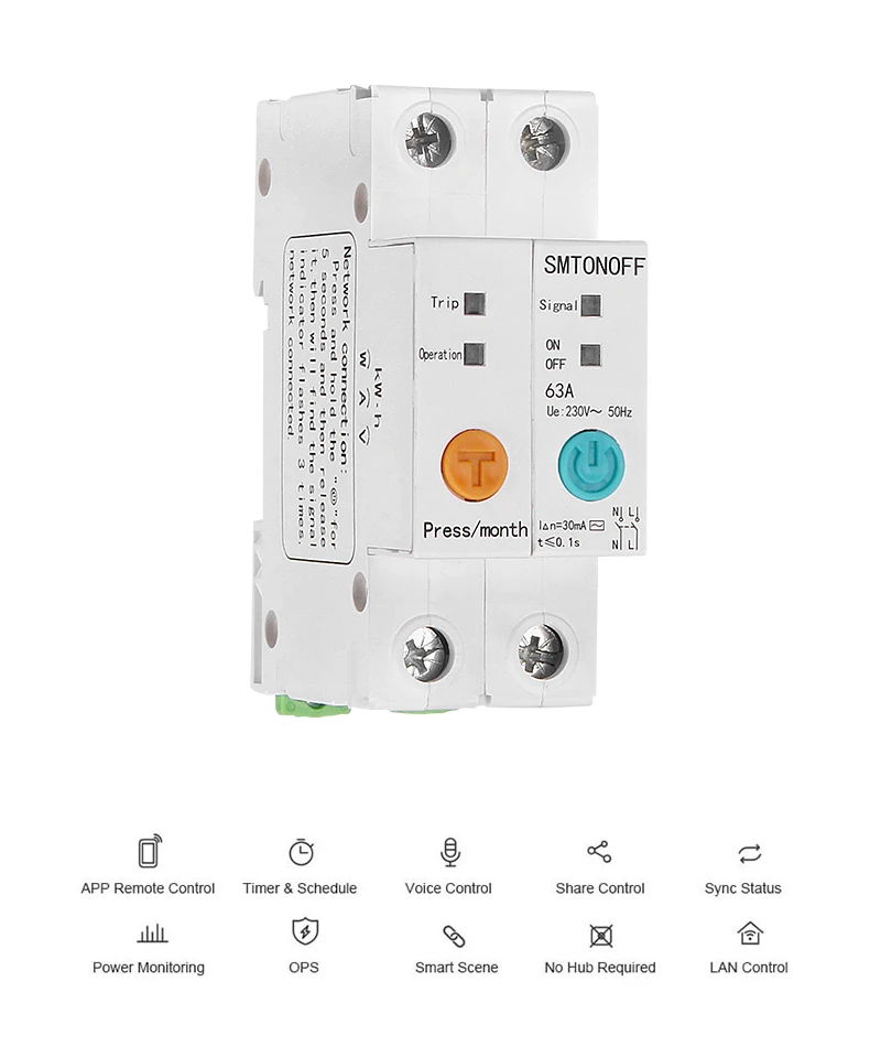 Характеристика 1. WIFI Smart swith и счетчик энергии в основном используются для быстрого отключения источника питания, когда происходит Электрический шок или утечка, для обеспечения личной безопасности и предотвращения электрического удара. Некоторые протекторы утечки также имеют защиту от перегрузки и перенапряжения, которые используются для запуска и остановки двигателя нечасто. 2. Дистанционное управление в любое время из любого места через iOS/Android APP eWeLink 3. Расписание/таймер петли 4. Мониторинг энергии, установка цены блока питания, может рассчитать потребление энергии домашнего устройства 5. Защита от перегрузки, 6. Защита от перенапряжения, 7. Защита от перегрузки по току 8. Предустановленные пороговые значения мощности/тока/напряжения через приложение, как только мощность/ток/напряжение в реальном времени достигнет пороговых значений, подключенные электрические приборы будут автоматически отключены Тепло обратите внимание 63A имеет только номинальный ток, рабочий ток может быть установлен в приложении в соответствии с вашими потребностями, диапазон настройки тока: 0.1-500A, напряжение может быть установлено: 0,1-1000 В, диапазон настройки мощности: 10-500KV Уведомление Этот продукт поддерживает только верхний вход, под выходной.