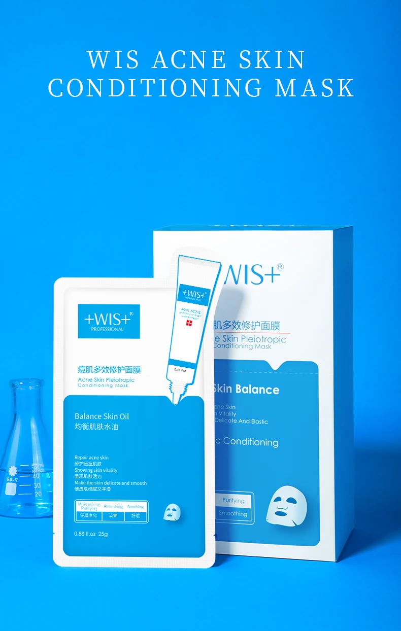 WIS Гиалуроновая кислота лечение акне шрам маска для лица 24 пакета-глубокое увлажнение, анти-акне, уменьшение и удаление акне пятна, ремонт акне пятна и покраснение