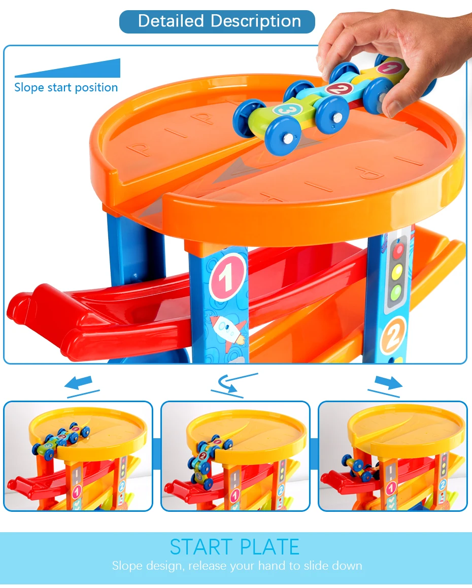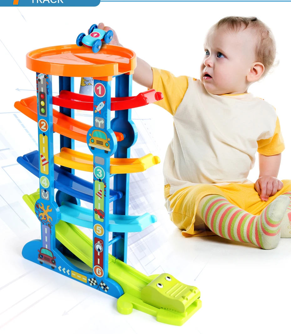 7-Слои пандус гоночный трек & 6 Мини инерционных машин раздвижные игрушки для ребенка ясельного возраста моторики развивающие обучающие игрушки для детей, подарок для детей